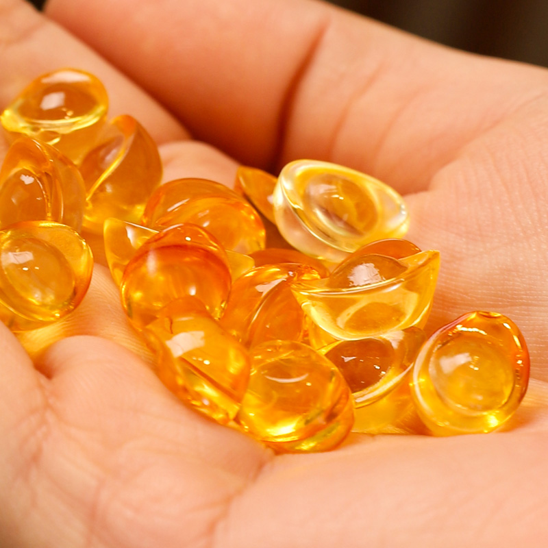 迷你水晶琉璃小元宝1.2cm聚宝盆水缸摆件装饰搭配琉璃小元宝摆件