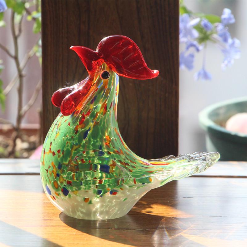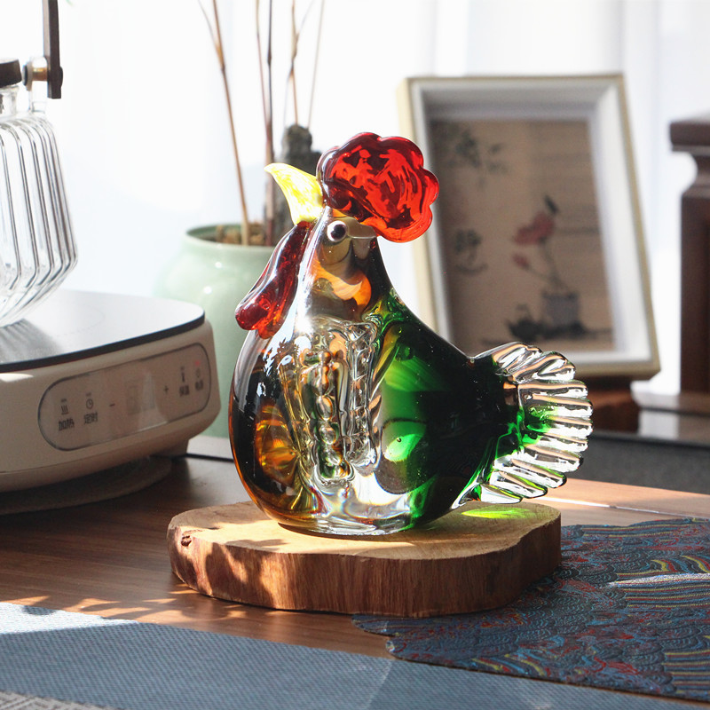 创意博山琉璃大公鸡咕咕鸡摆件玻璃动物生肖北欧家居样板间装饰品