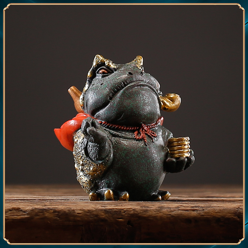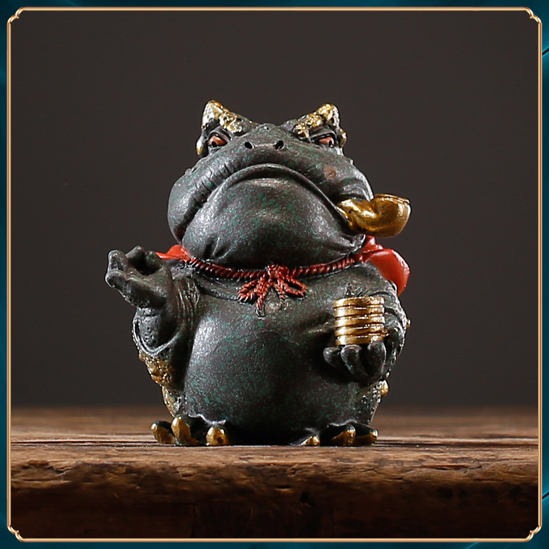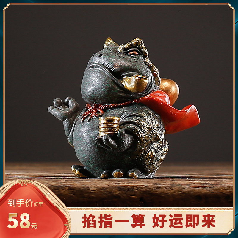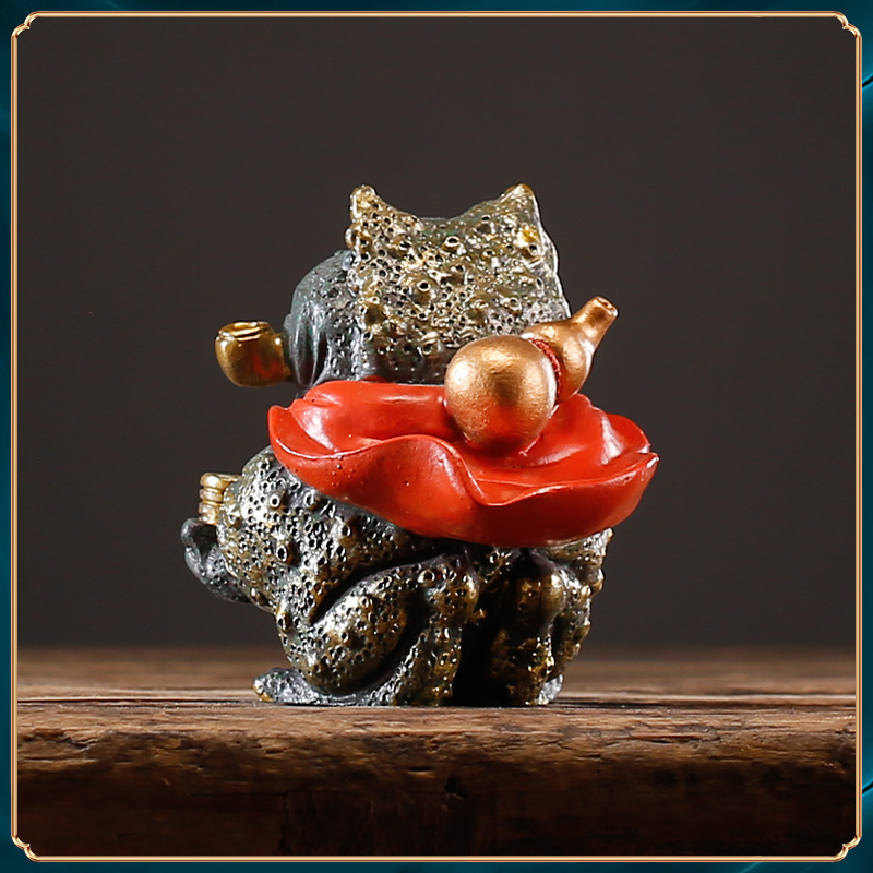 中式国潮祥瑞蛤蟆金蟾鱼缸造景家居桌面装饰创意送礼精品茶宠摆件