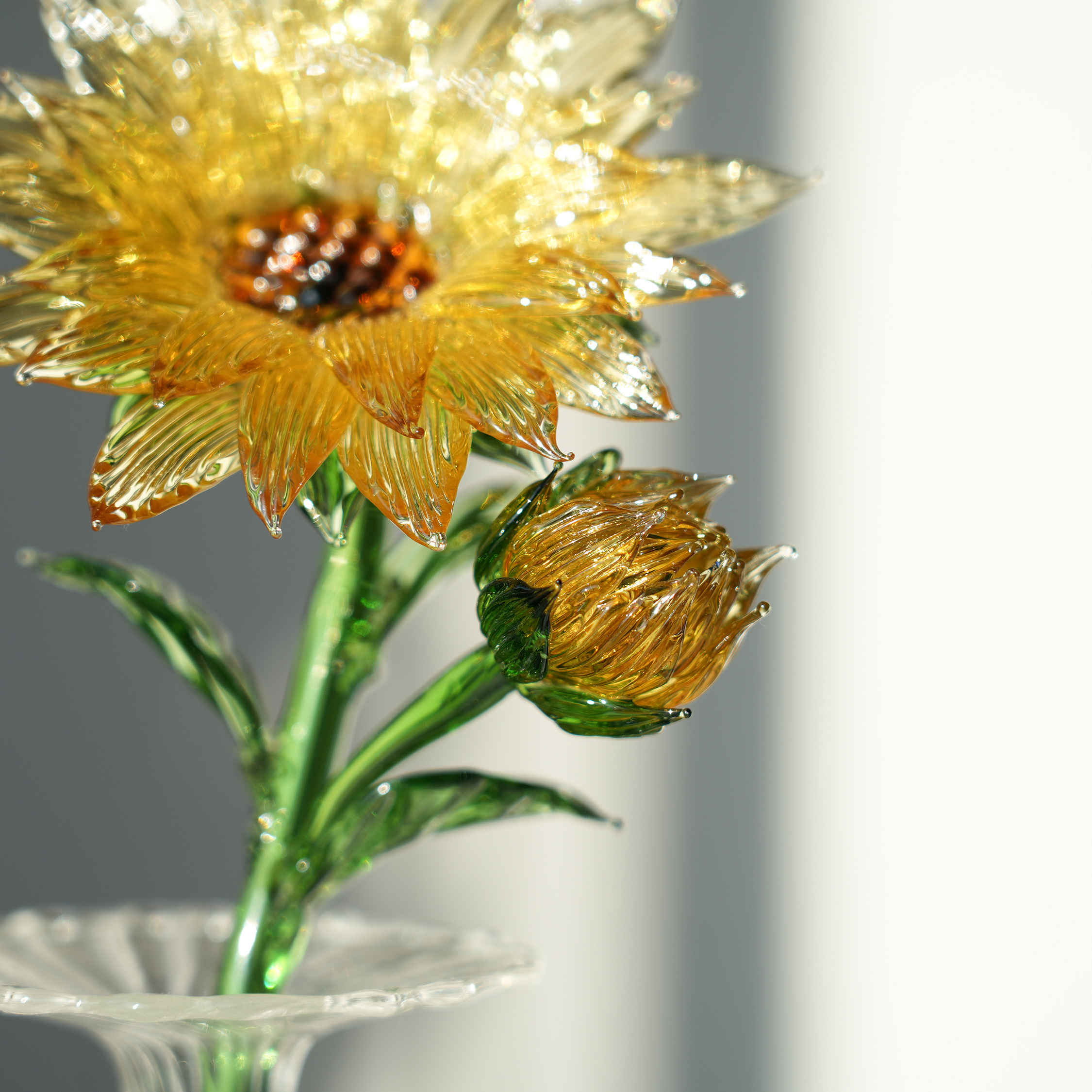 琉璃手作仿真向日葵永生花插花摆件治愈家居玄关办公桌装饰品礼物