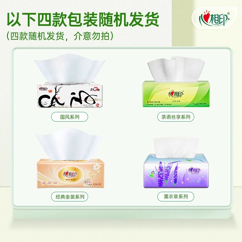 心相印抽纸茶语系列纸巾120抽20包卫生纸家用面巾纸擦手抽纸无香