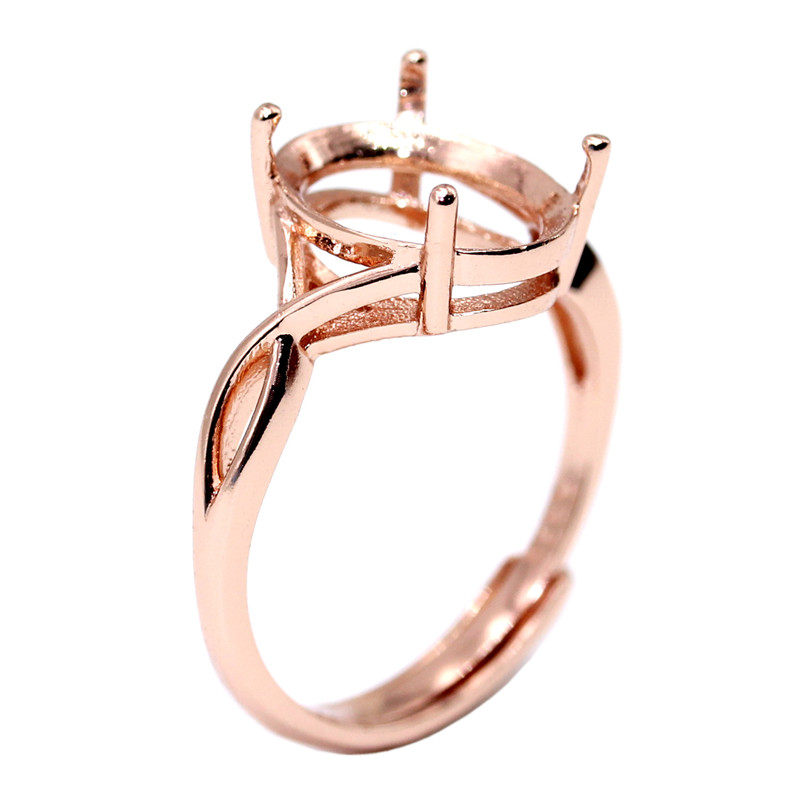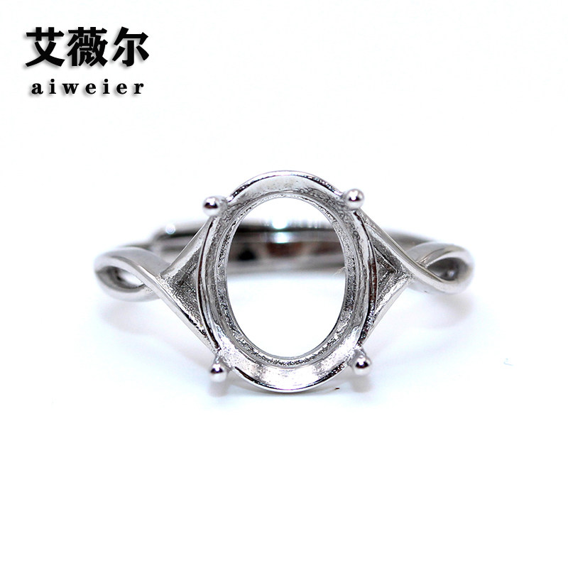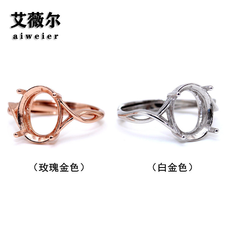 简约925银戒托空戒指托无钻净版镀18K金8*10-10*12-11*15-13*18