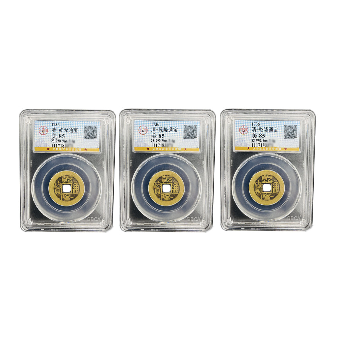 三枚乾隆通宝真品古钱币康熙铜钱公博评级美品盒子币清代保真88分