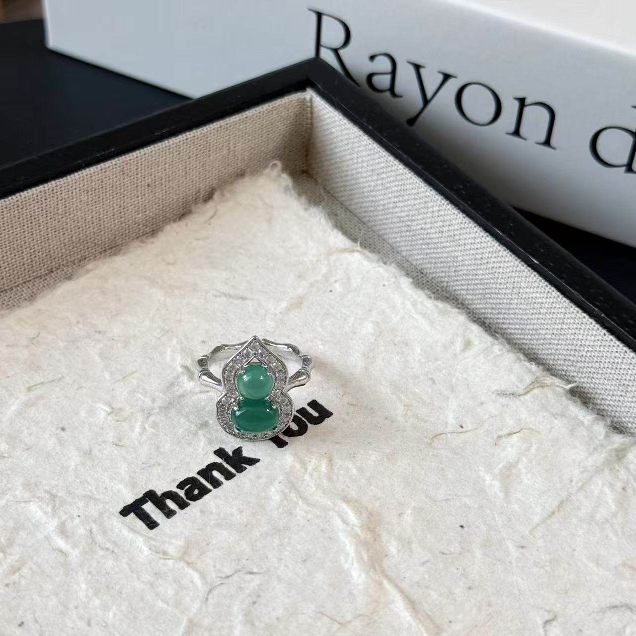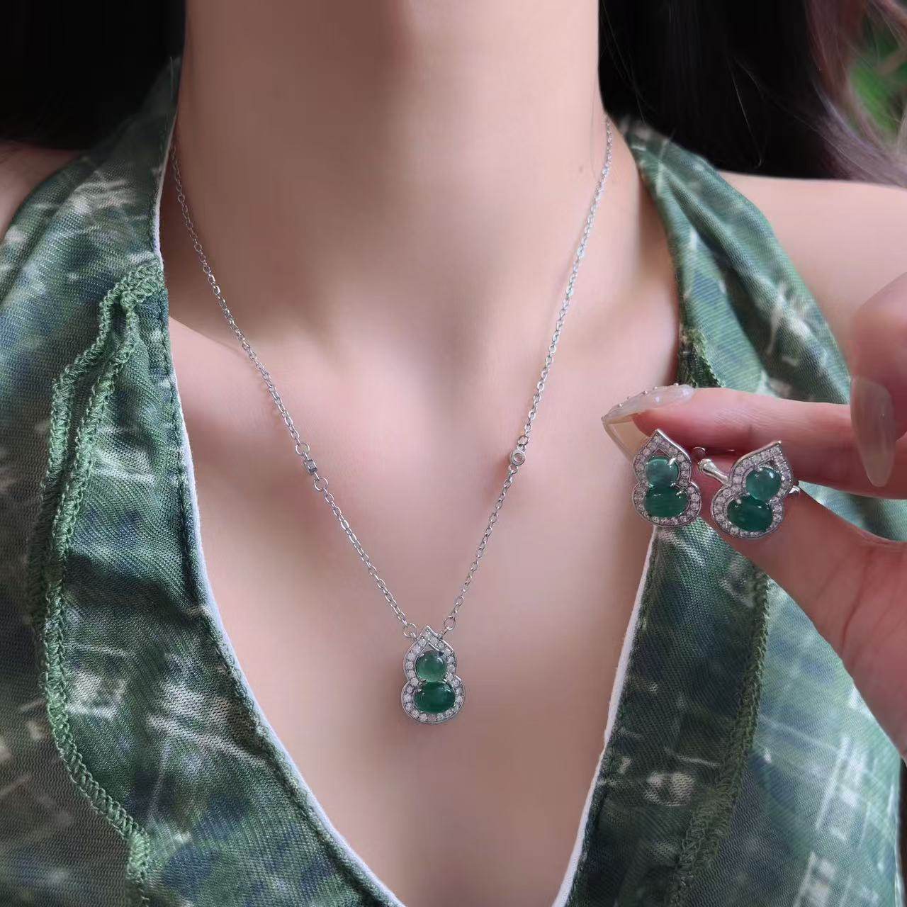 微镶锆石天然玉髓绿色小葫芦项链戒指耳钉女小众时尚轻奢配饰组合