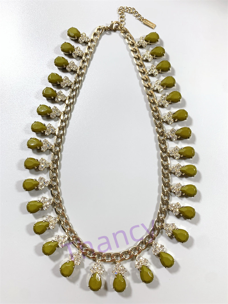 美国小众品牌BB打标baublebar打标橄榄绿色水滴优雅晚宴礼服项链