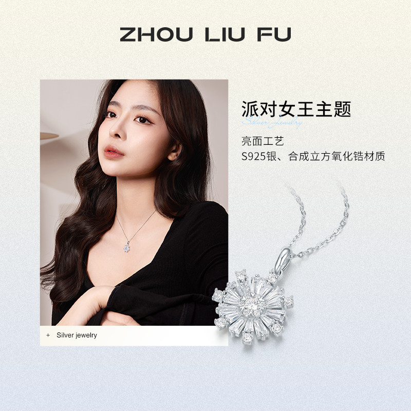 周六福烟花项链女银链坠S925银高级感轻奢送女友节日礼物