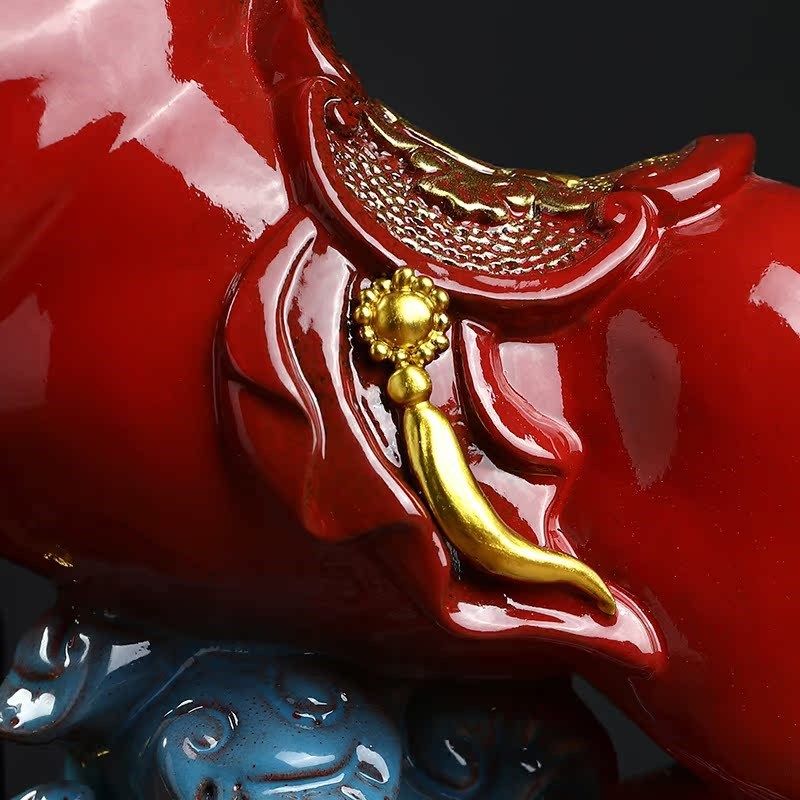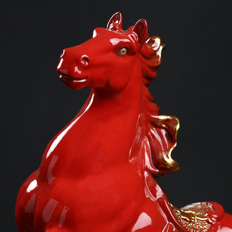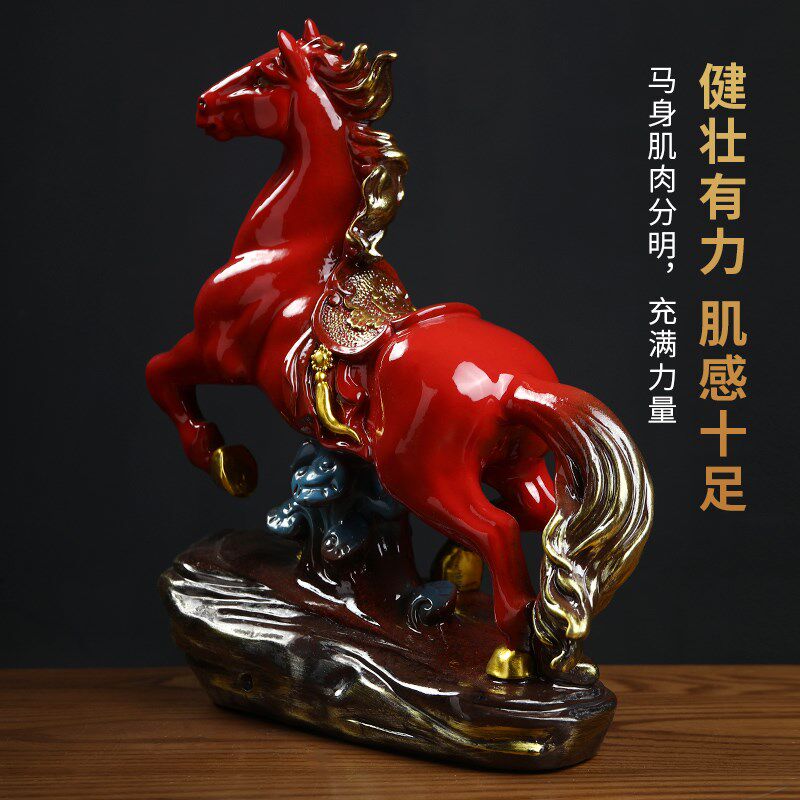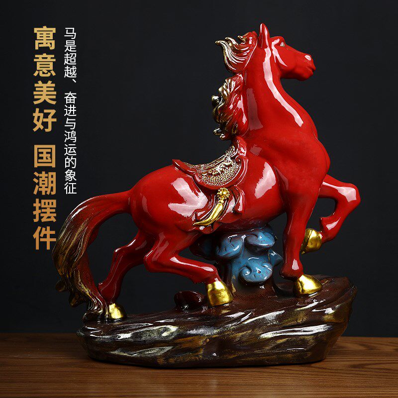 马到成功摆件陶瓷红色马工艺品客厅领导办公O室装饰品高档开业礼