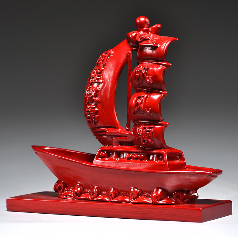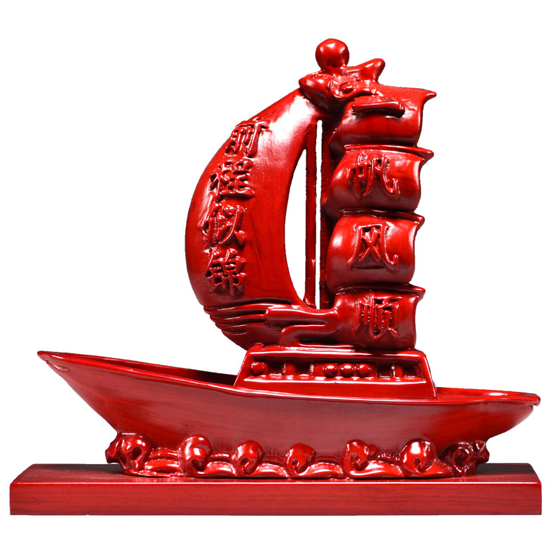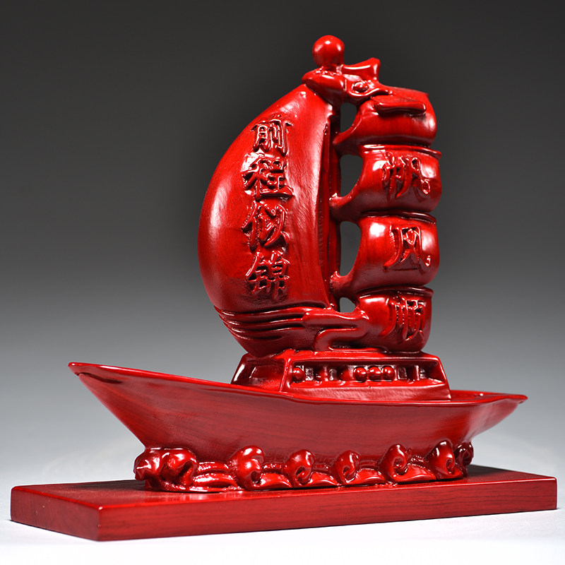 红色木质一帆风顺龙船木雕摆件客厅办公装饰品公司乔迁开业送礼品