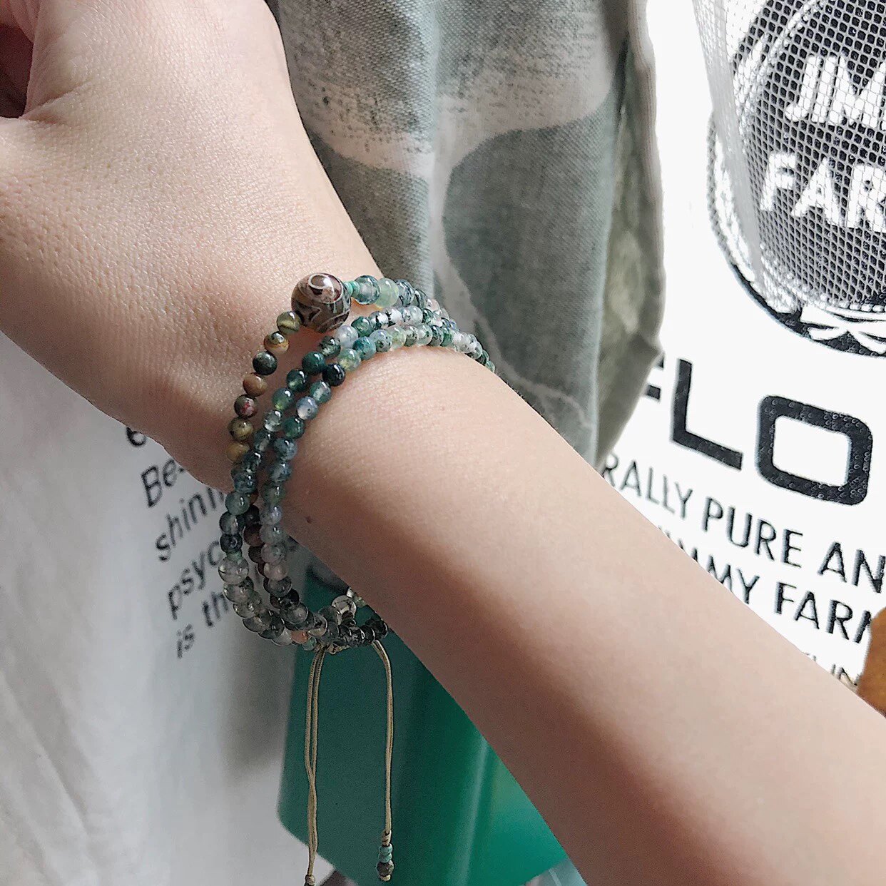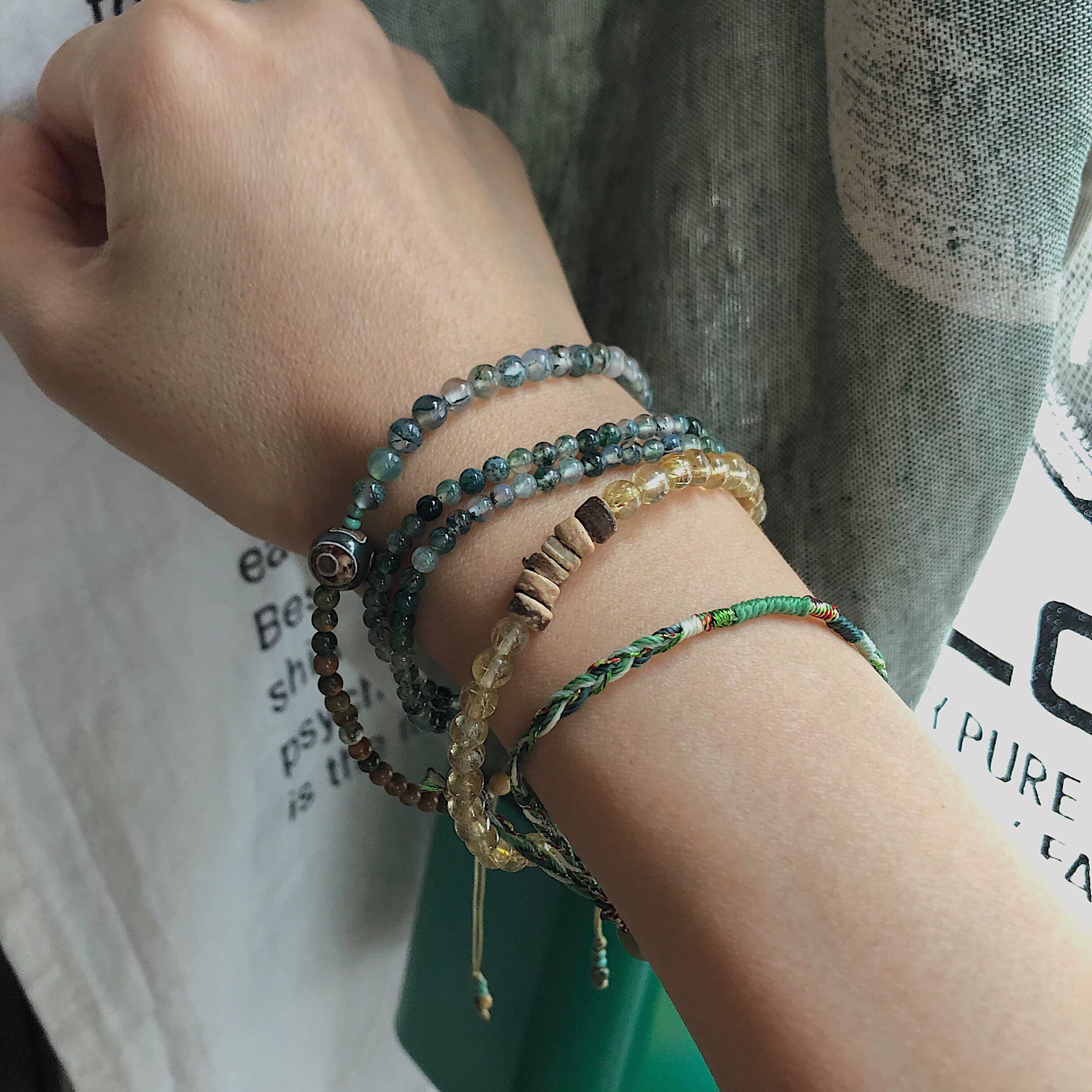 三圈水草玛瑙绿色手链小众原创设计复古民族手工编绳送礼饰品女款