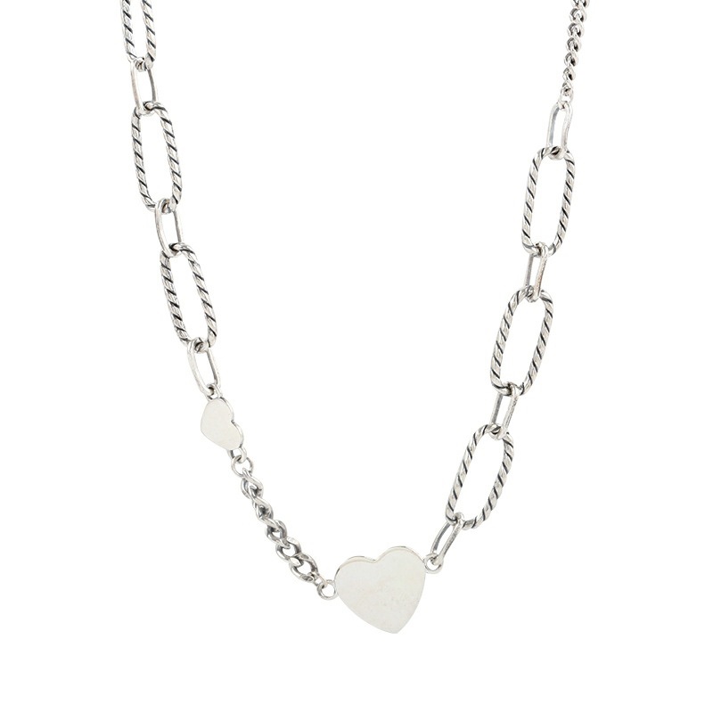 韩国日系s925银复古光面爱心链条项链锁骨链复古小众项圈首饰A37
