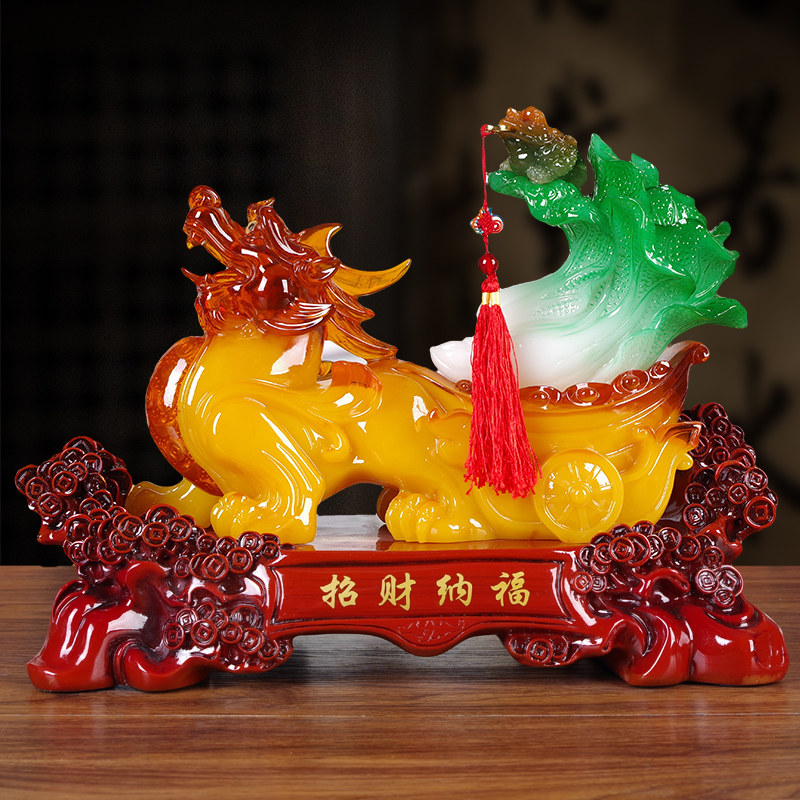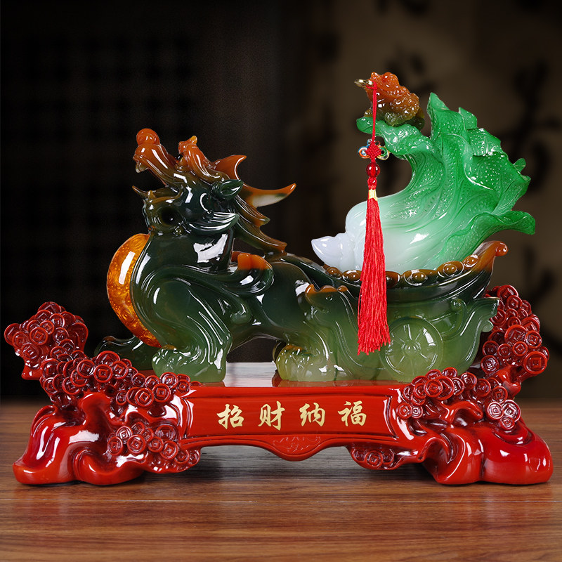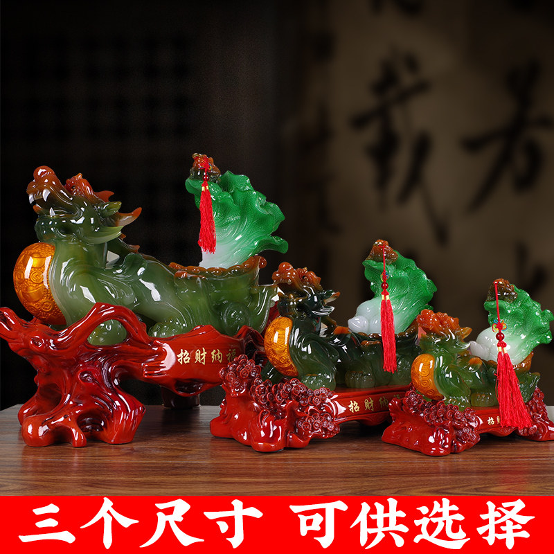 招财纳福貔貅大号玉白菜家庭客厅办公室店铺装饰开业工艺礼品摆件
