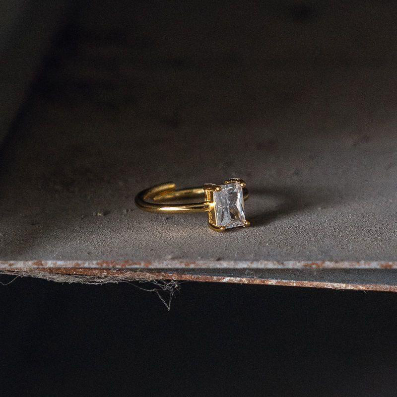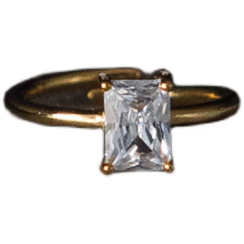 新品复古复古切割白水晶宝石开口戒指百搭个性文艺范简约