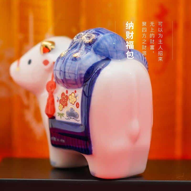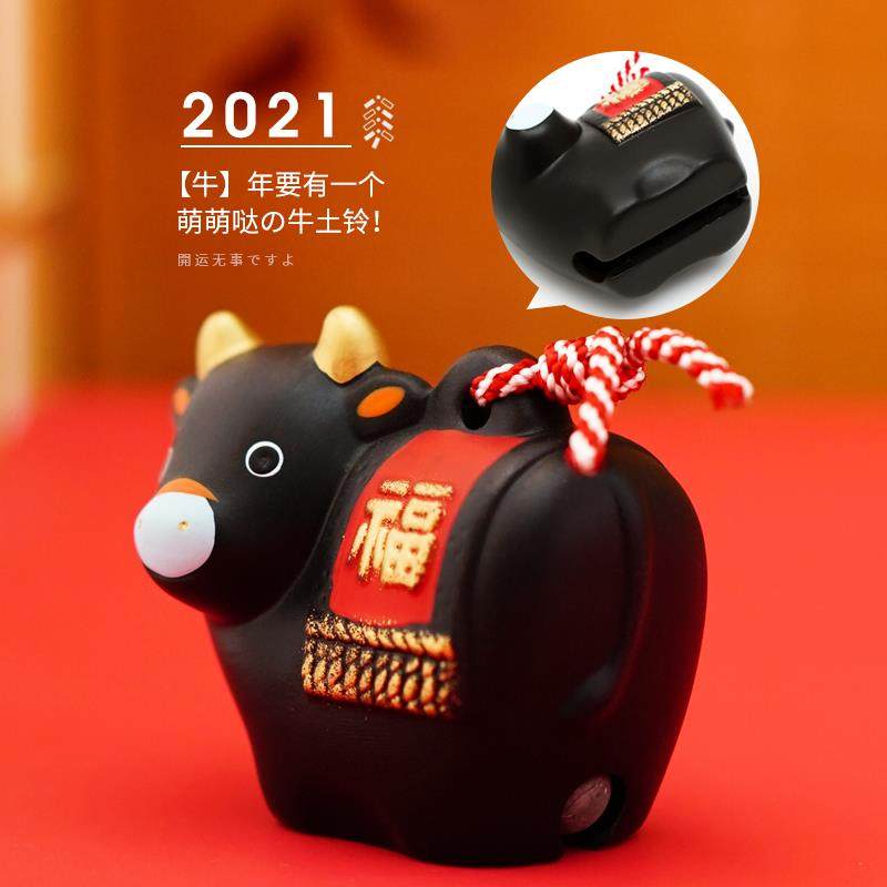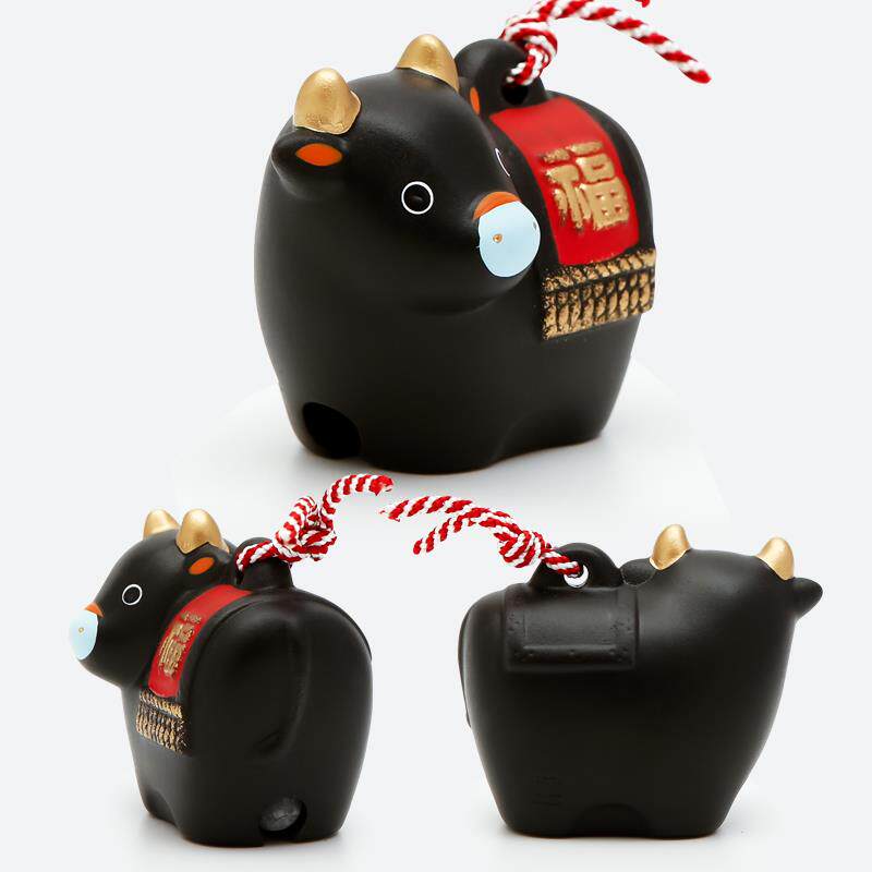 正品日本药窑生日肖土铃陶瓷师摆件黑色平安家居牛生吉祥物车载工
