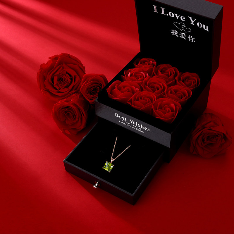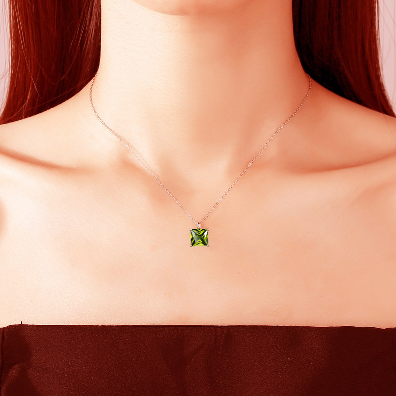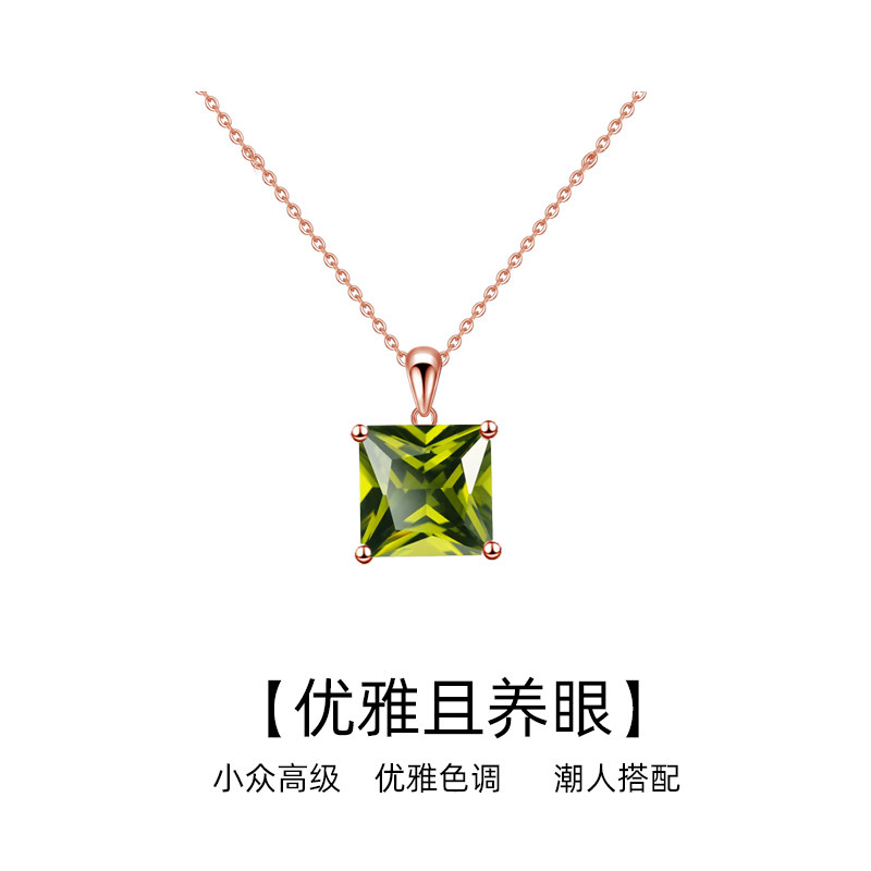 高级深橄榄银项链小众设计正方锁骨链合成闪亮气质绿色法式浪漫