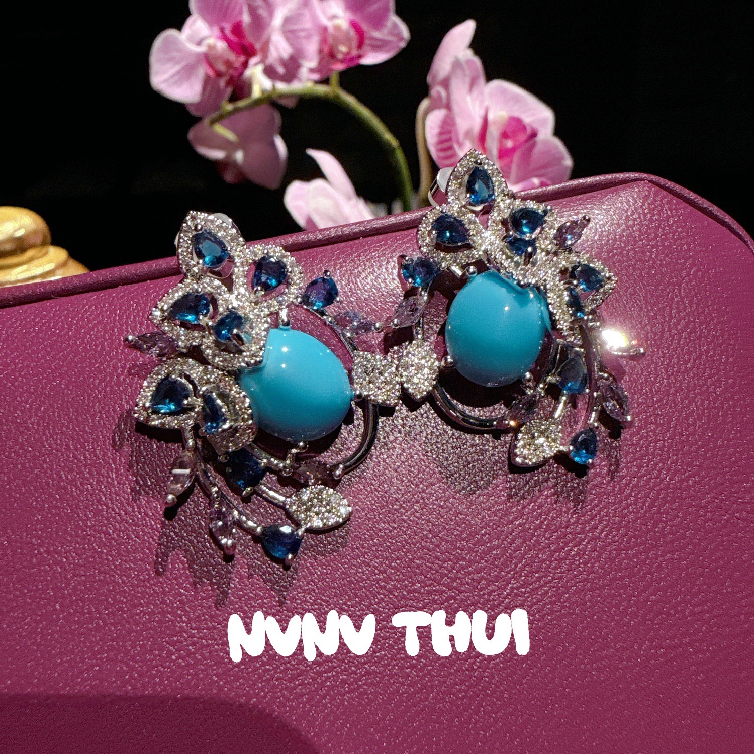 珠宝 宫廷鸢尾花绿松宝石满钻项链 宴会高定 蝶恋花闪钻耳环