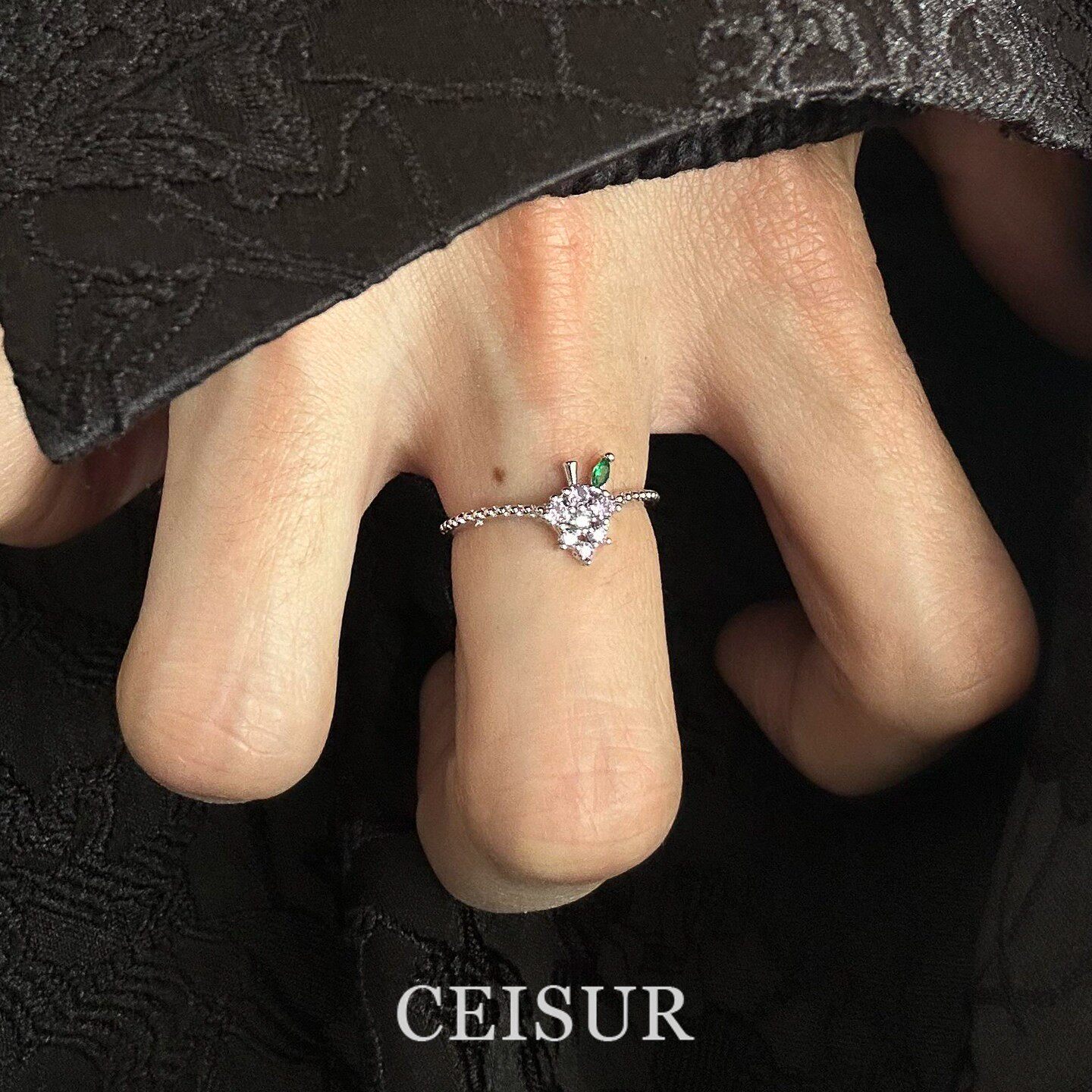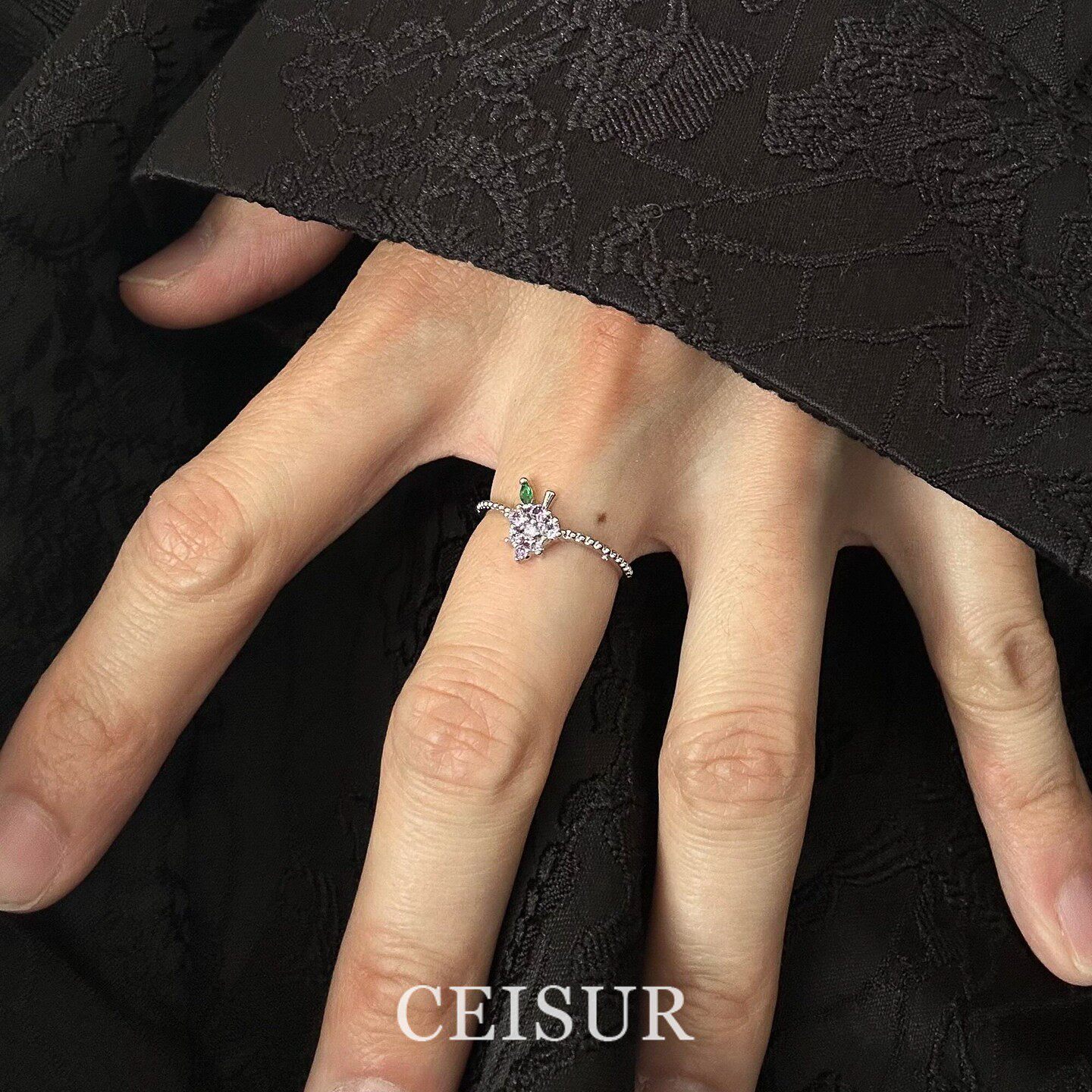 S925纯银紫色迷你葡萄戒指女小众设计轻奢高级感2026新款爆款指环
