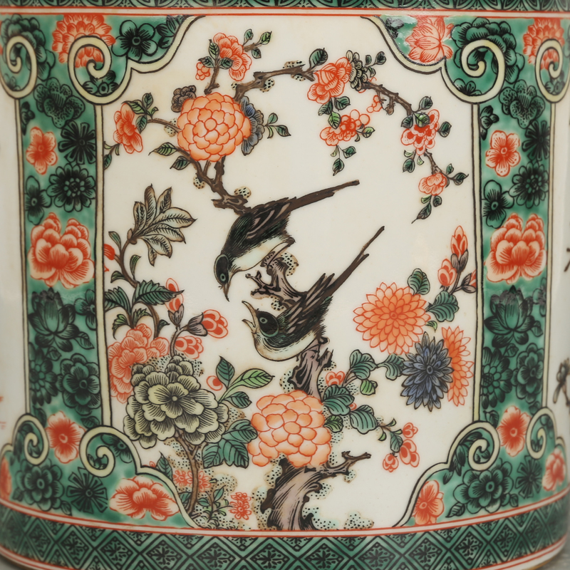 大清康熙五彩花鸟纹笔筒仿古瓷器摆件古董古玩老物件真品保真