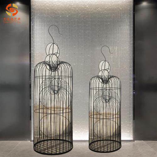 现代铁艺金属鸟笼装饰品别墅样板房酒店会所玄关室内室外艺术摆件