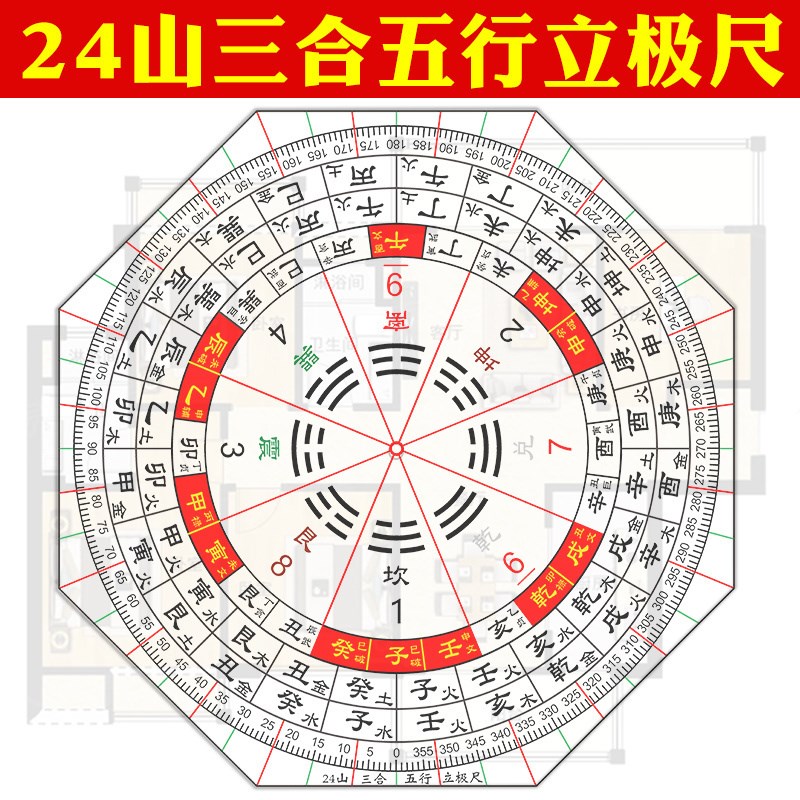 立极尺二十四山三合五行立极规24山高精度专业透明罗盘测量绘图尺