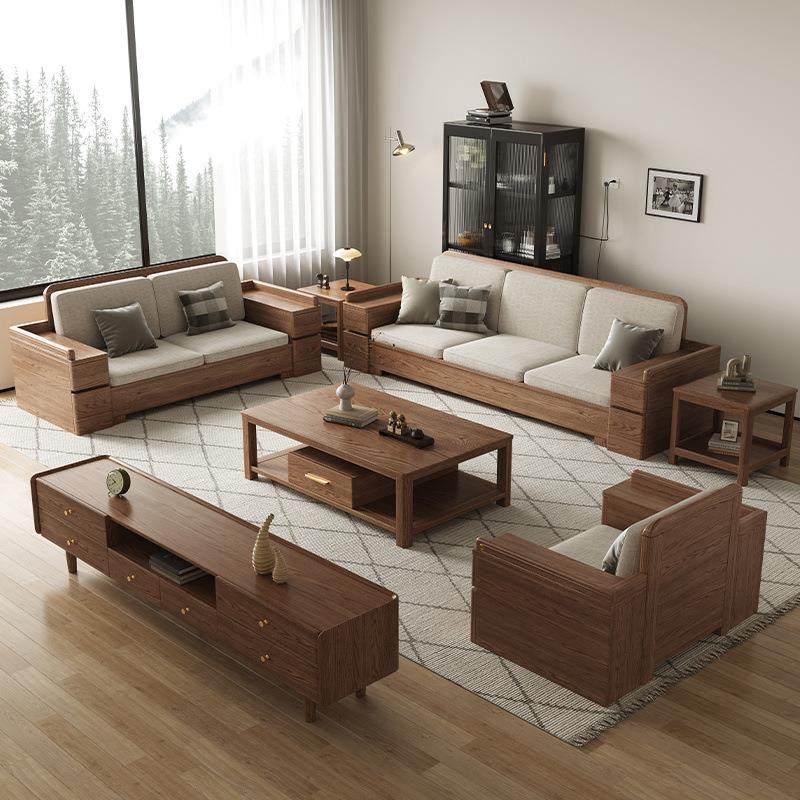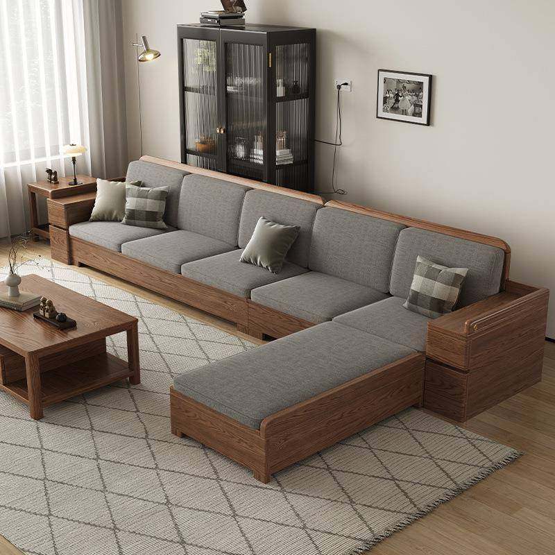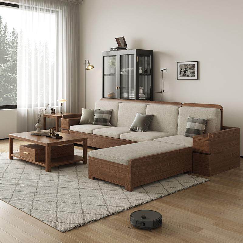 白蜡木实木沙发现代简约组合客厅小户型高箱储物转角贵妃北欧家具