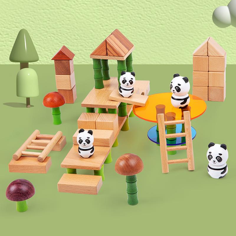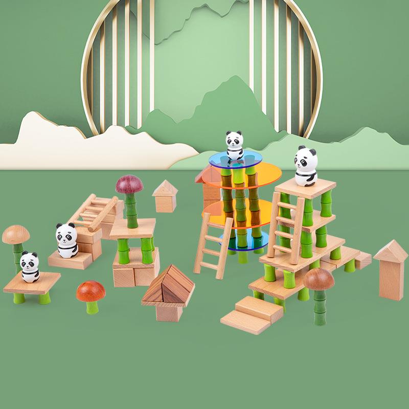 儿童创意国风竹林积木拼搭早教启蒙认知熊猫元素模型益智搭建玩具