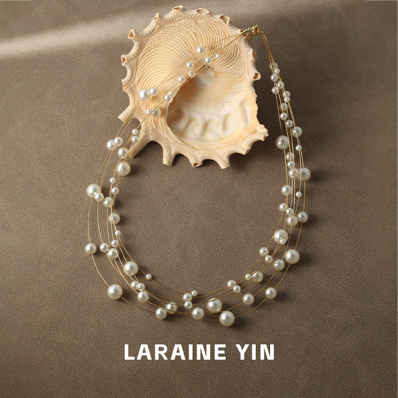 法式复古满天星多层珍珠项链轻奢choker七夕礼物锁骨链