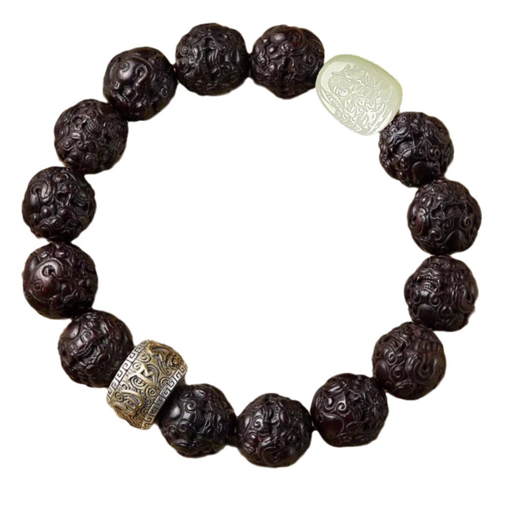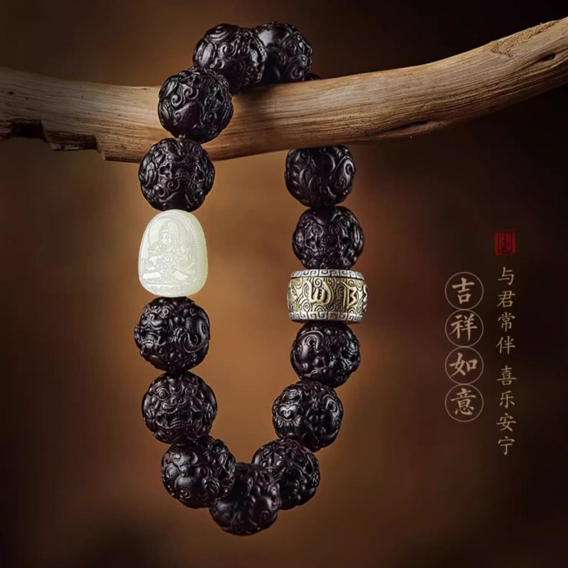 招财貔貅本命年男士盘玩手串天然小叶紫檀木质佛珠女六字真言手链