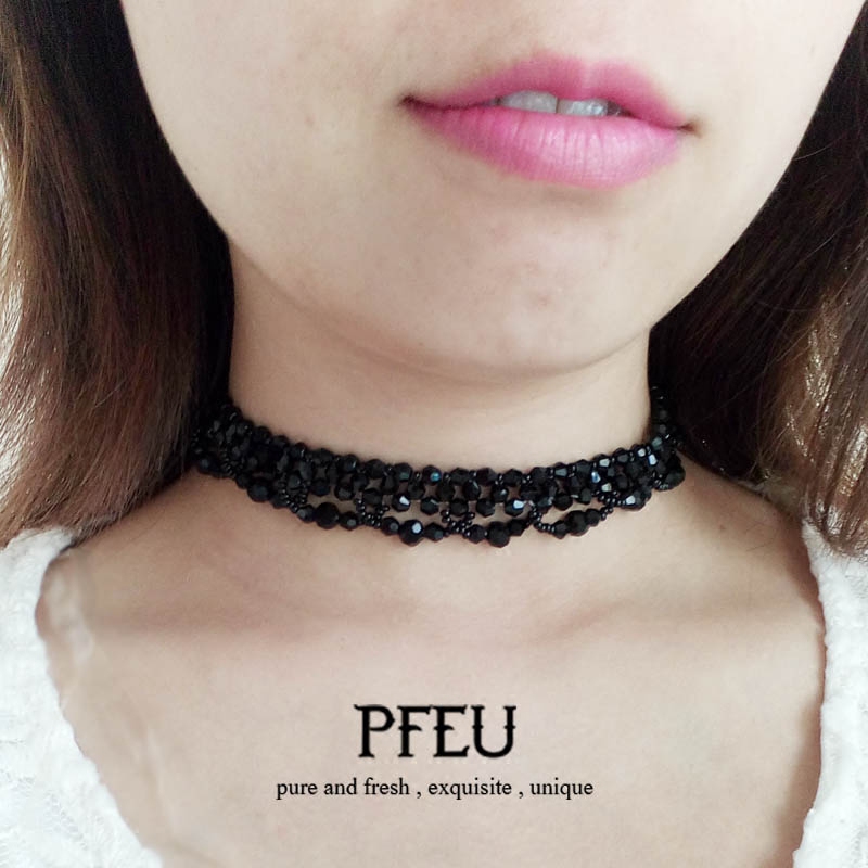 PFEU手工choker黑色项链衣服饰品女水晶锁骨链颈链宽日韩配饰颈带