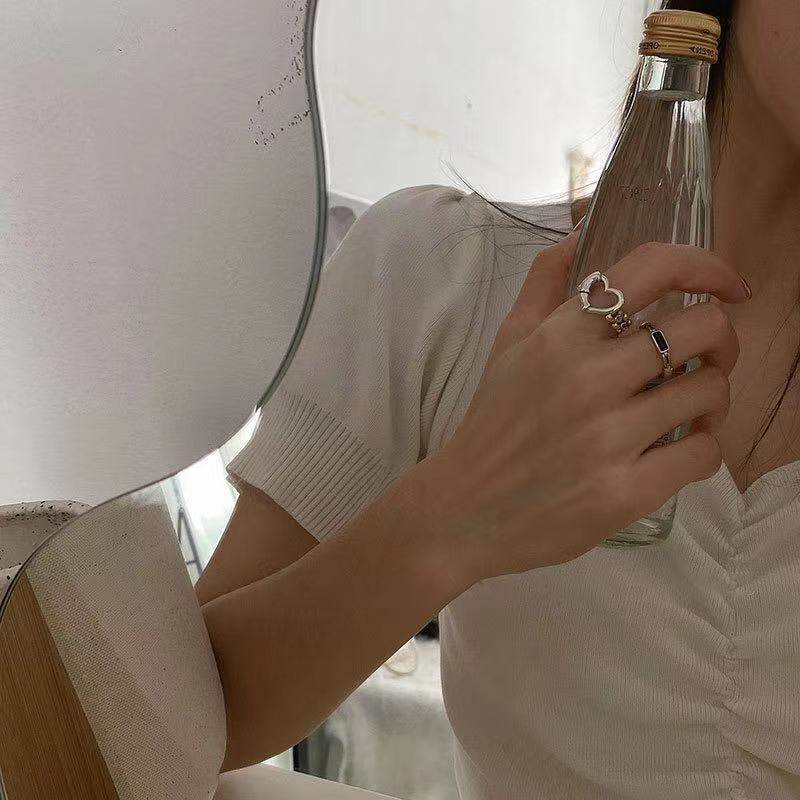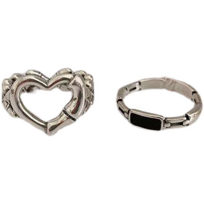 千亿少女#韩国东大门镂空心形爱心复古黑色链条食指戒镀925银戒