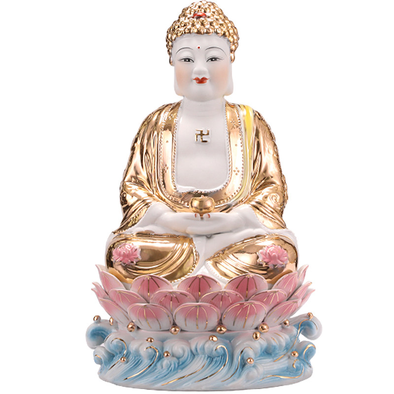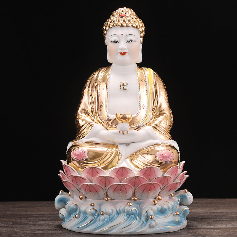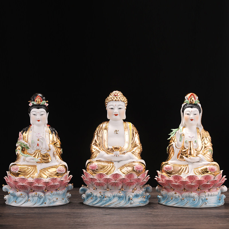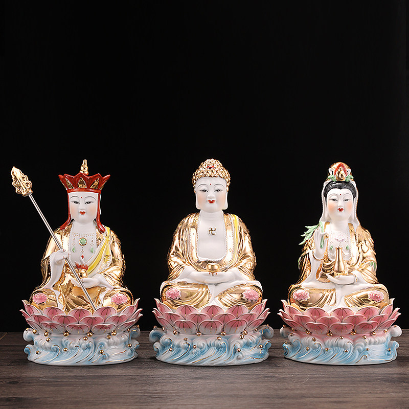 速发陶势西方三陀居家装饰摆件 观音菩萨大瓷至地藏王菩萨阿尼圣