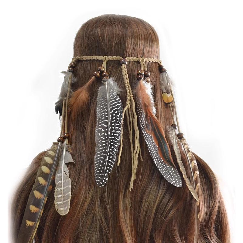 复古木珠拍摄发饰流苏印第安部落发带出游装备头饰孔雀绿色热带
