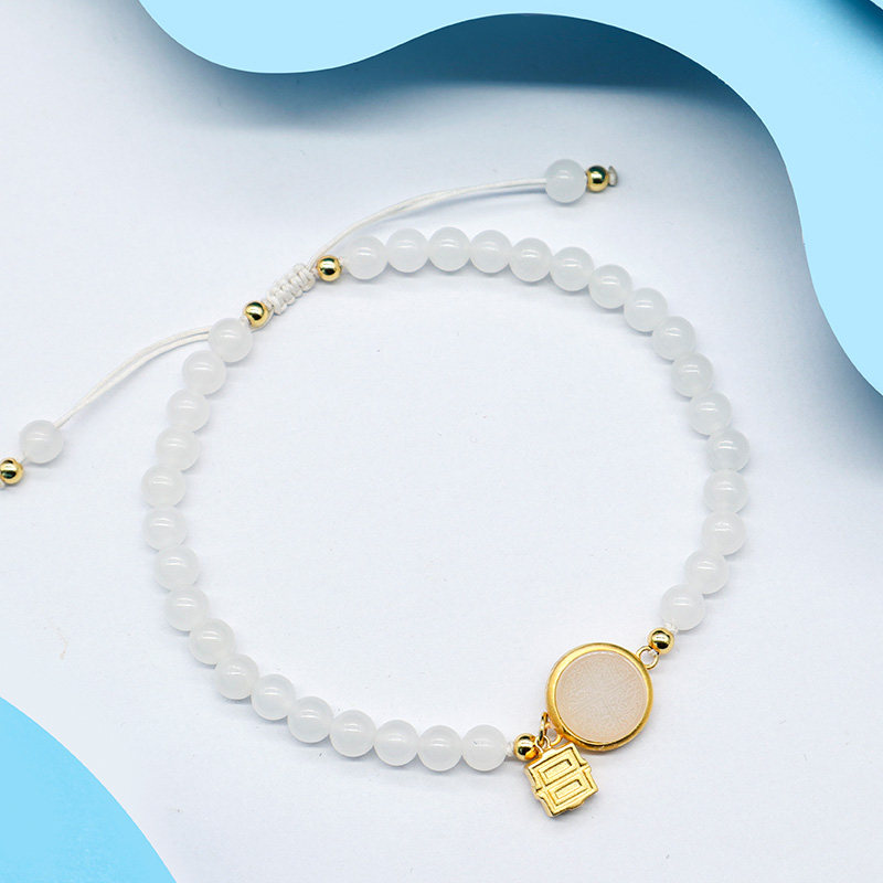 故宫宫廷文化宫里的世界纯银镀金珐琅彩手链和田白玉男女情侣礼物
