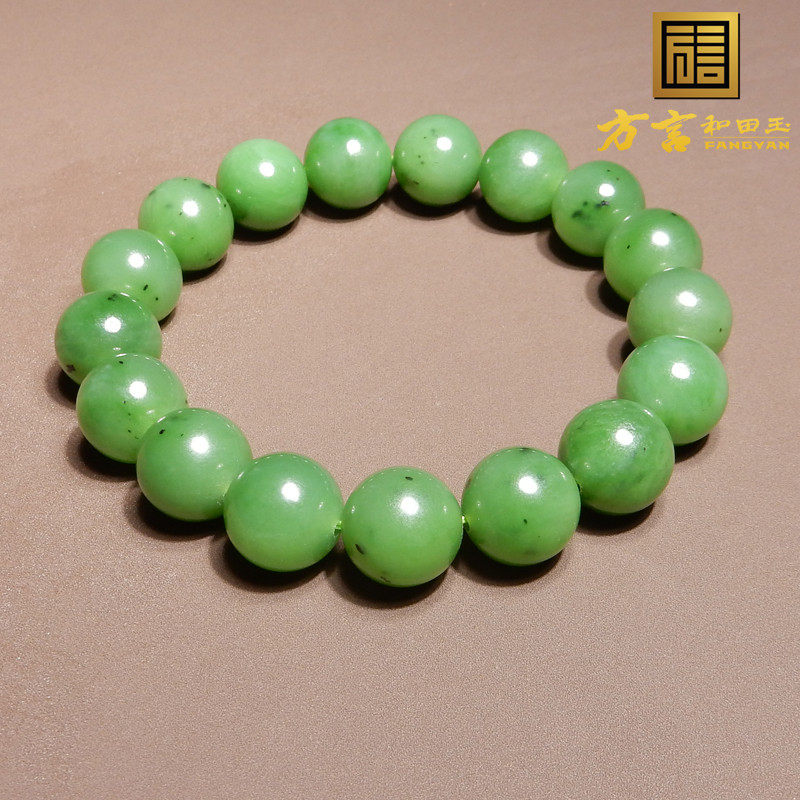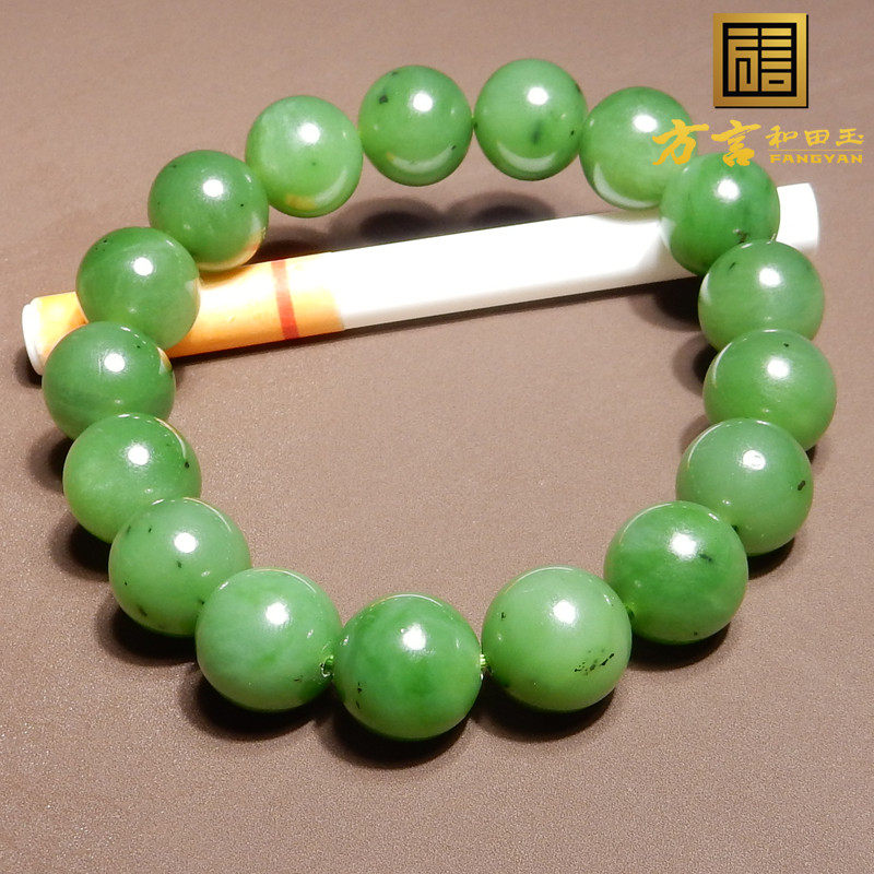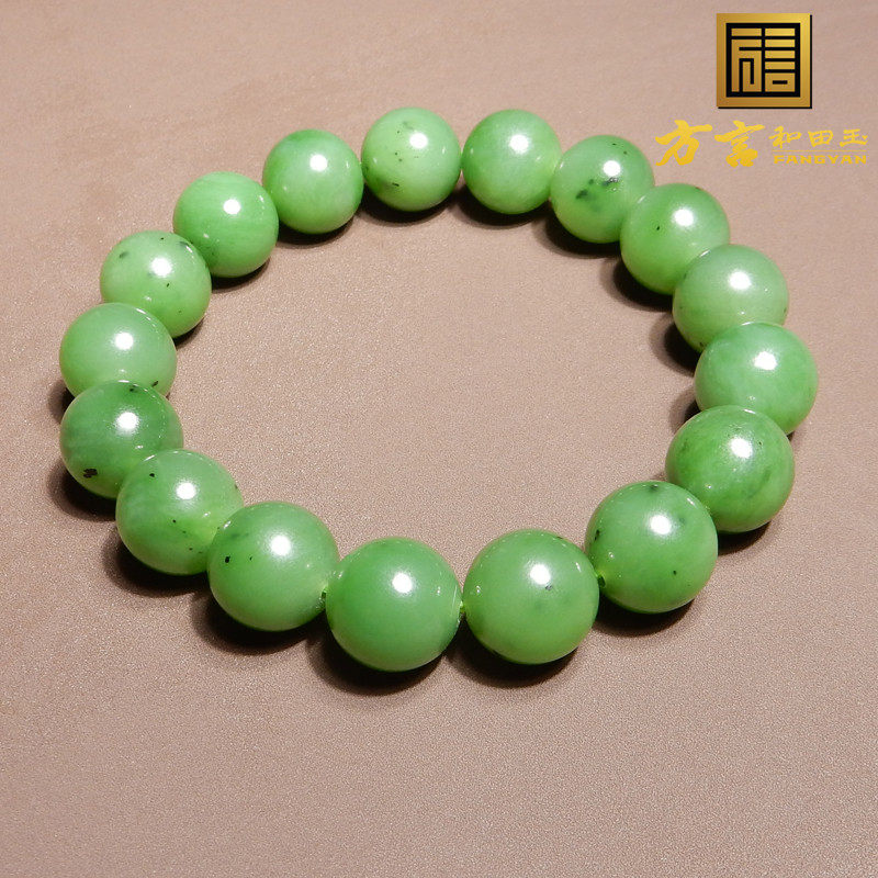 方言和田玉特色罗斯老坑料碧玉阳绿色12mm圆珠手串手链回馈玉友h8