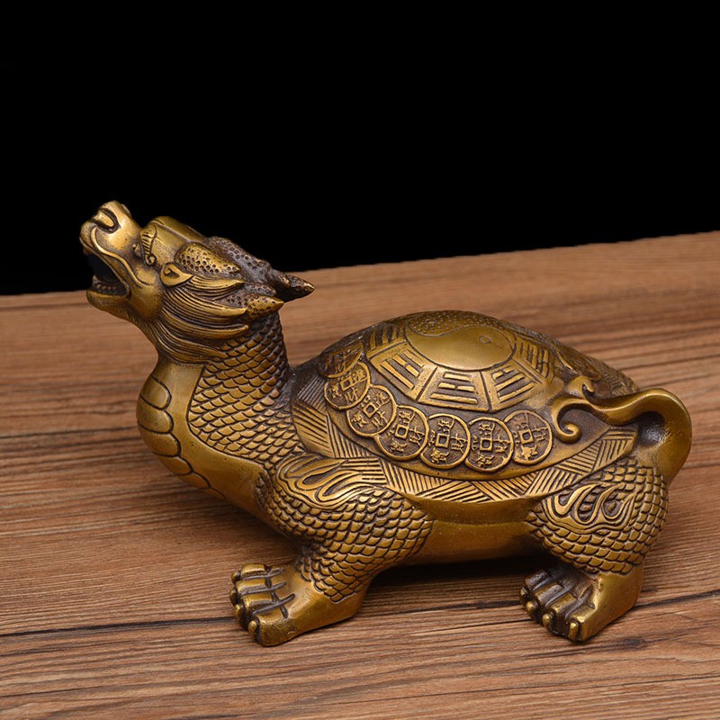 庙中祝福铜龙龟摆件八卦龙龟聚镇龙头龟铜家居客厅办公室装饰财宅