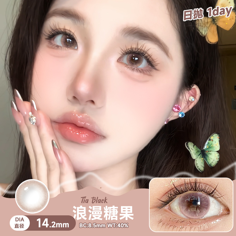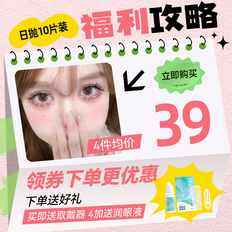 美瞳日抛粉色10片小直径无锁边自然粉棕色温柔一次性近视隐形眼镜