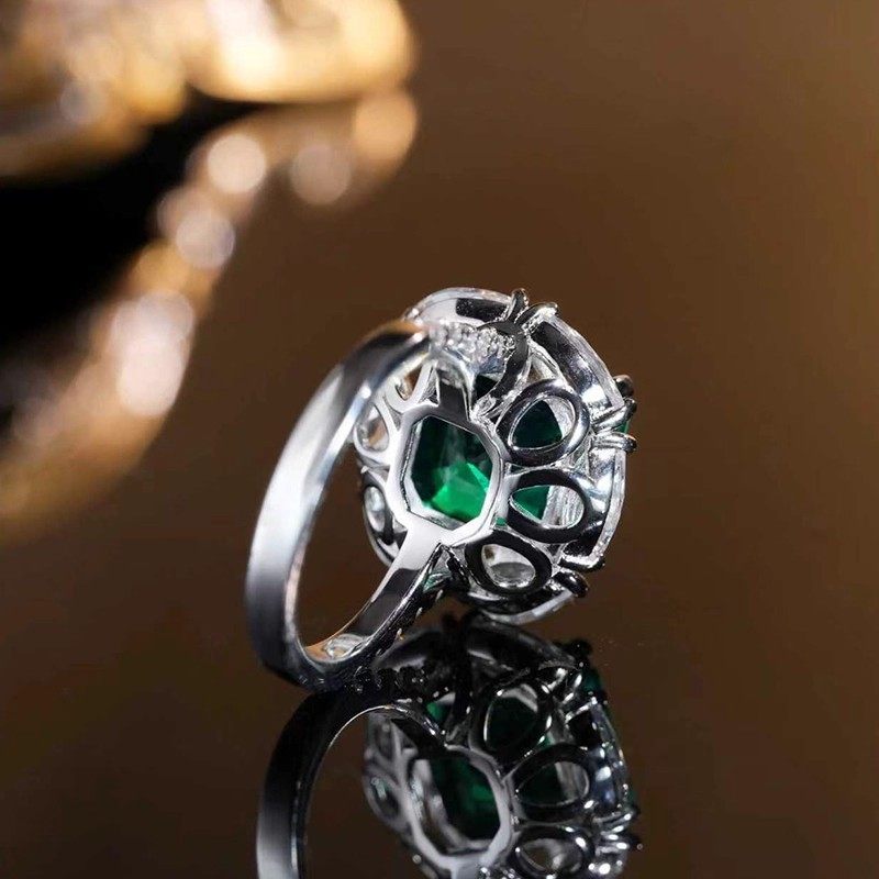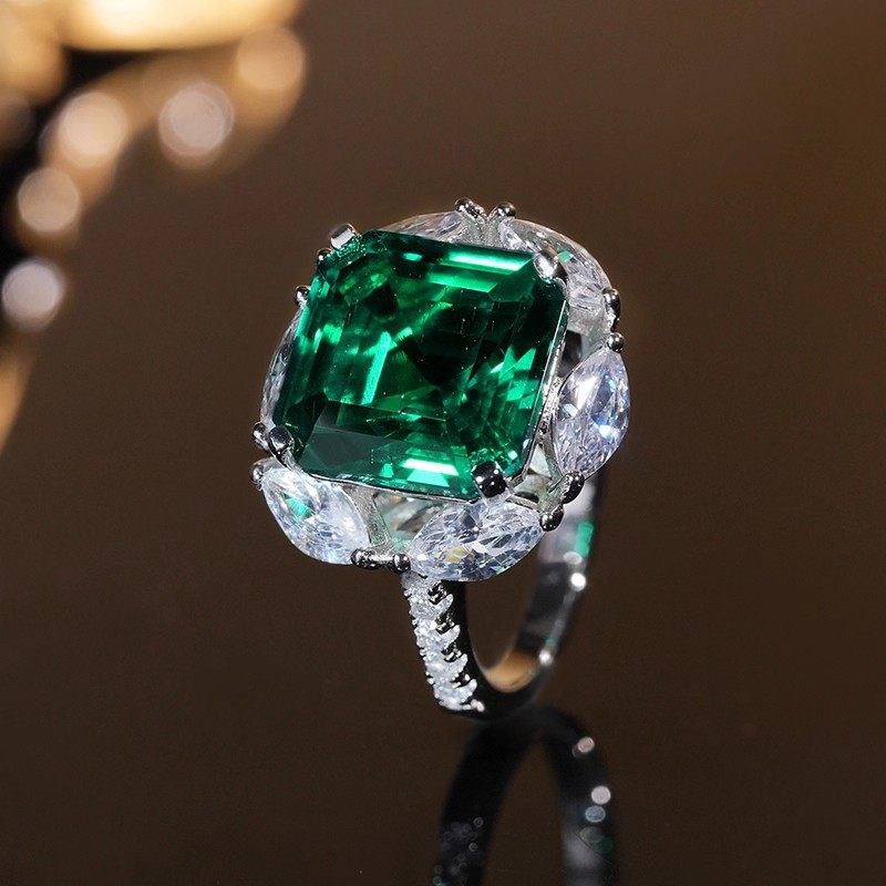 奢华高端女王的公主方钻克拉祖母绿高碳钻戒指日式轻奢彩宝饰品女