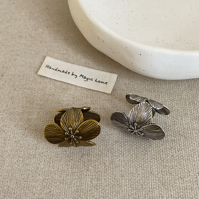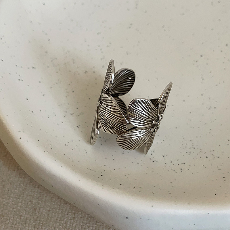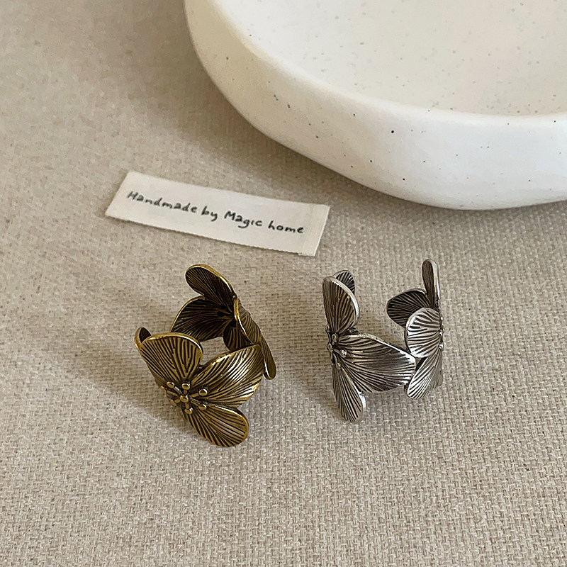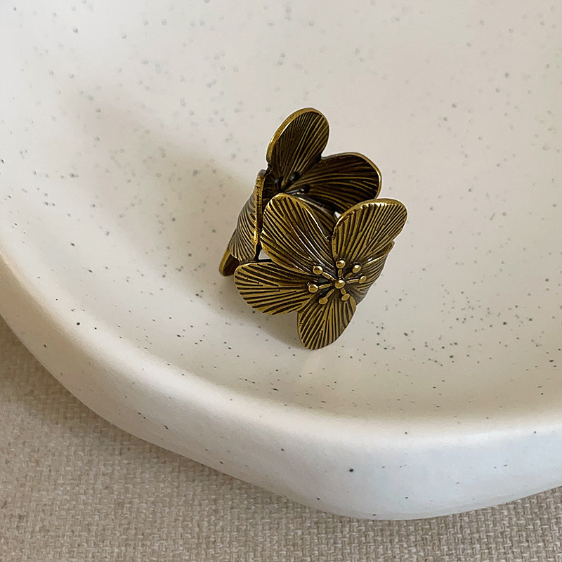 欧美夸张做旧花朵宽面戒指女小众设计感个性气质潮流百搭指环戒子