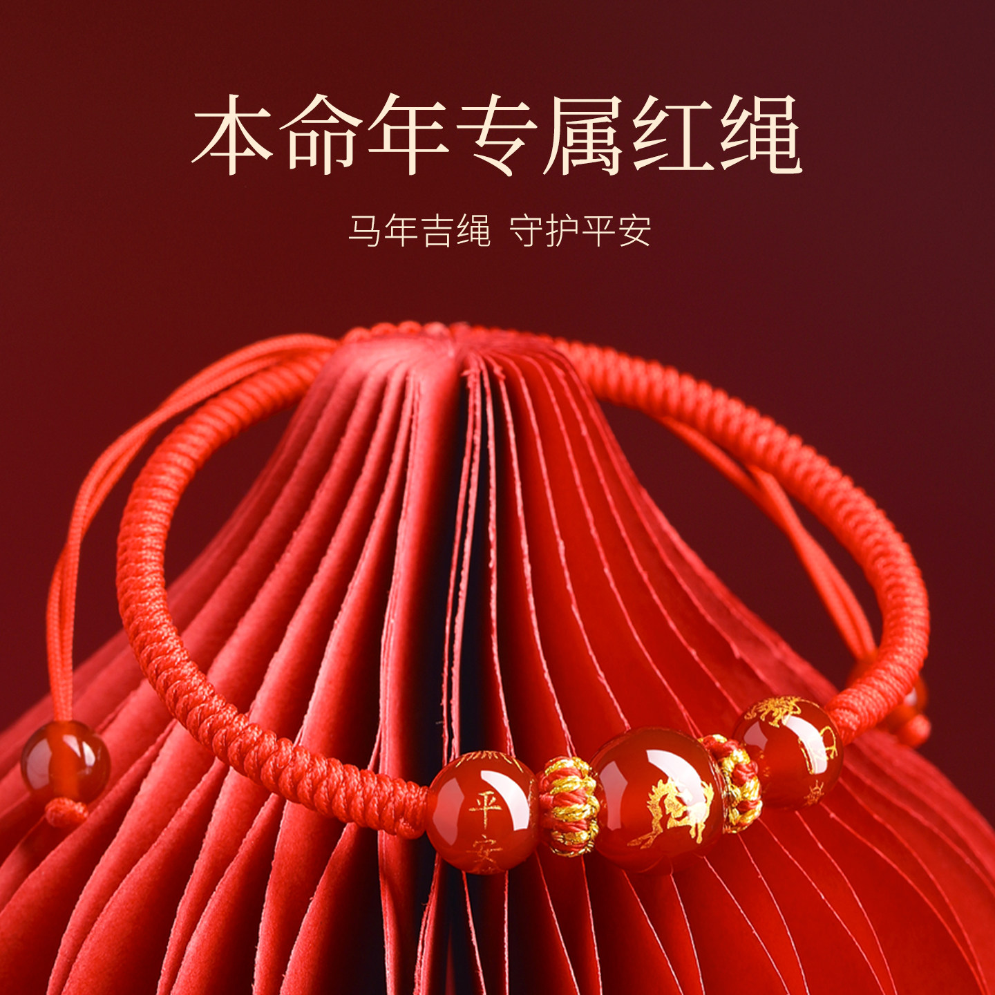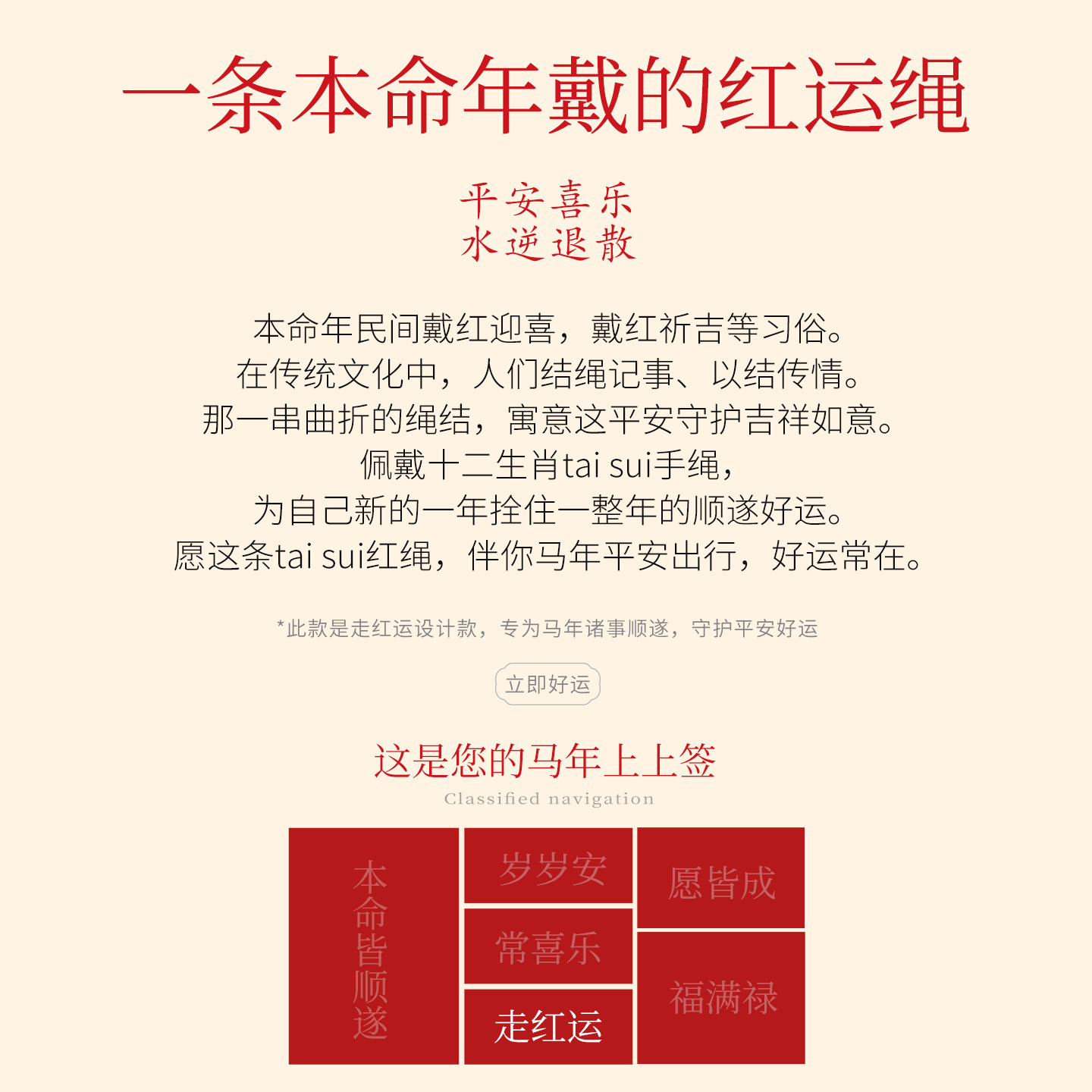 红绳手链女生肖太岁化符编织好运2026马年吉祥佩戴物本命年红手绳