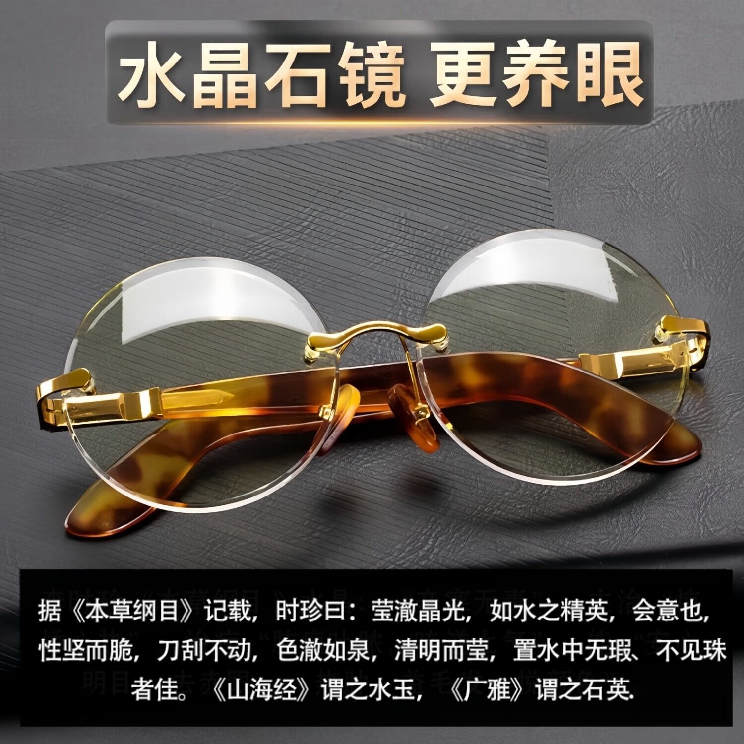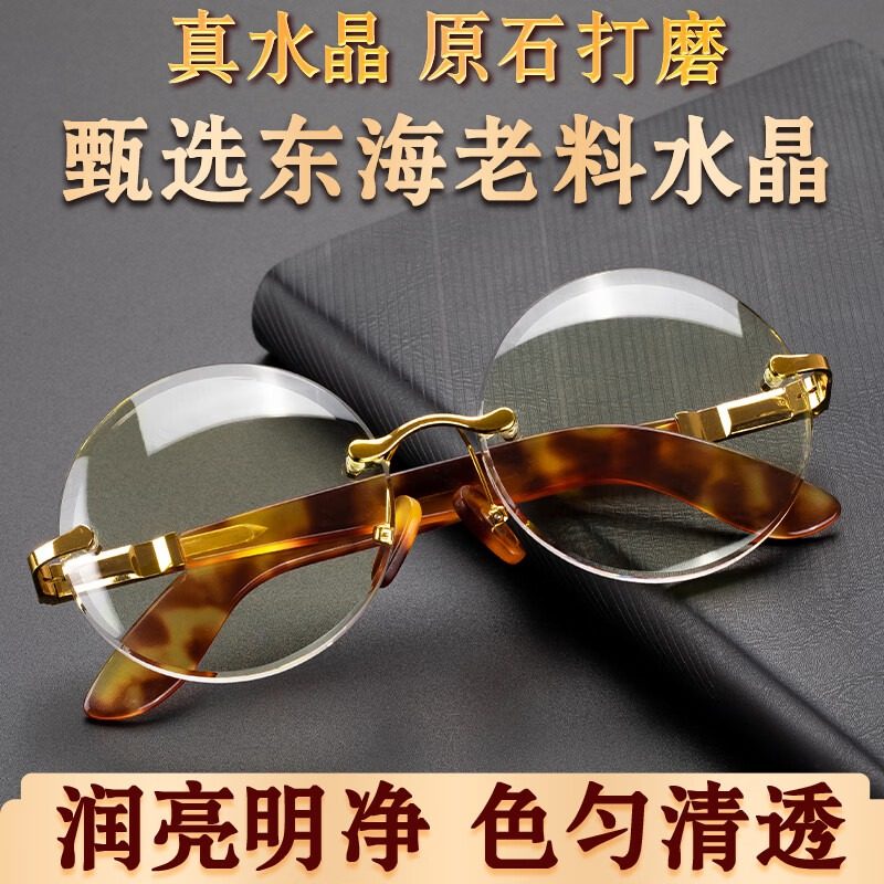 纯天然水晶眼镜800弯竹叶青石头镜圆款水晶眼镜石头眼镜润目养眼
