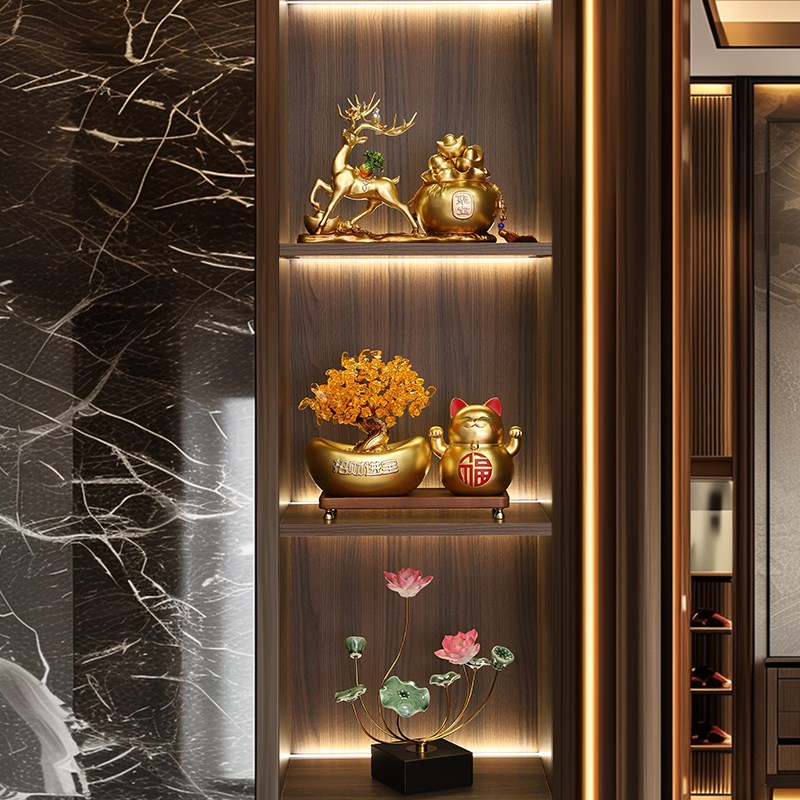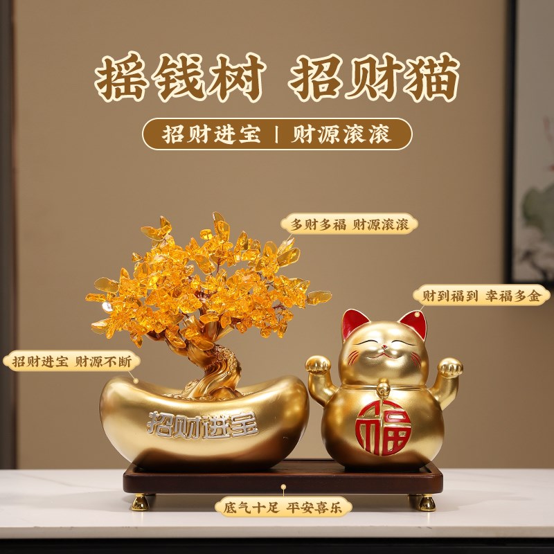 新中式摇钱树招财猫摆件发财树办公室前台酒柜玄关装饰.送开业礼