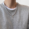 强光灰色蝴蝶结珍珠项链女2025年新款爆款颈链独特设计吊坠毛衣链