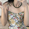 方糖家 显白绿色玉石串珠碧玉色S925纯银新中式项链元宝扣锁骨链