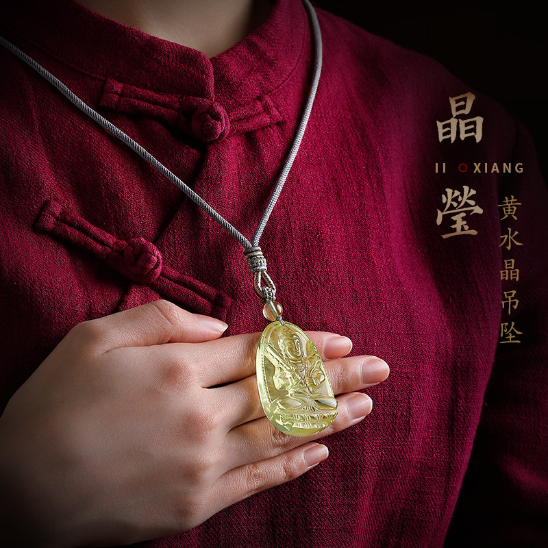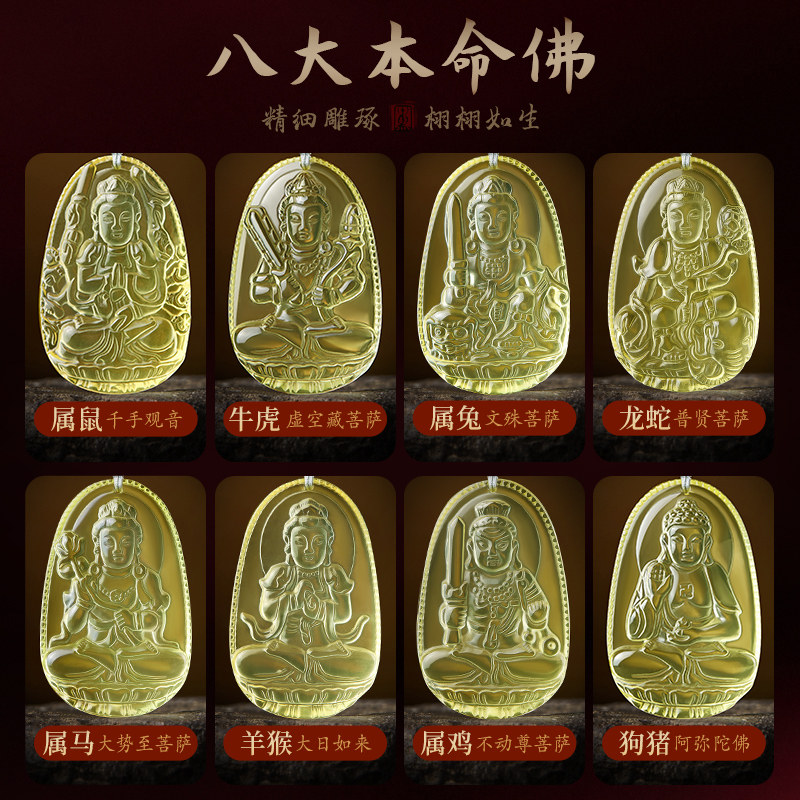 佛牌吊坠黄水晶本命佛生肖挂饰品文殊菩萨大势至虚空藏不动尊项链