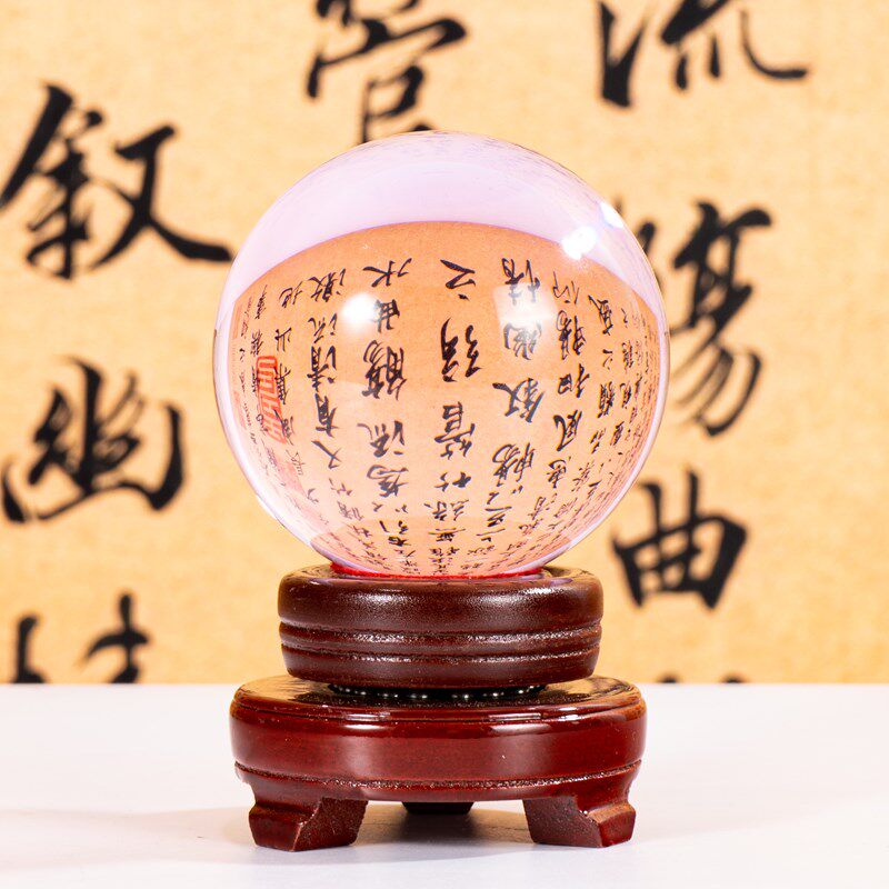 紫色水晶球摆件粉黄色透明玻璃球紫气东来客厅办公室卧室书房装饰