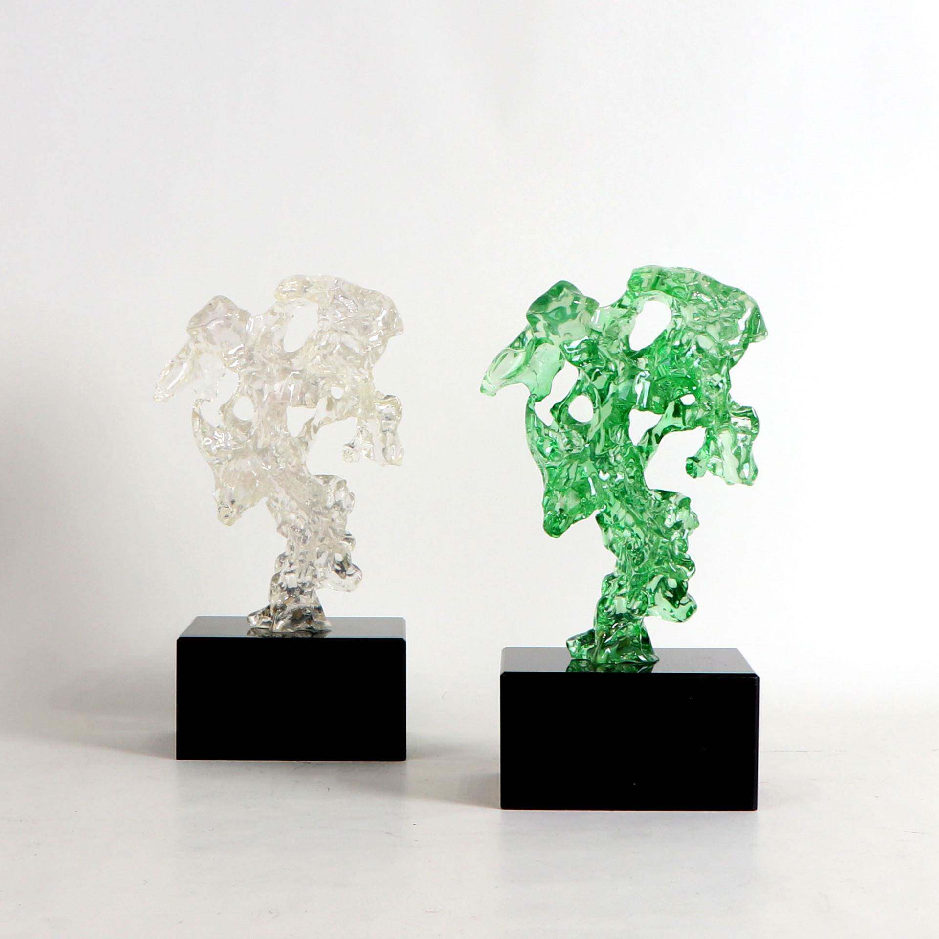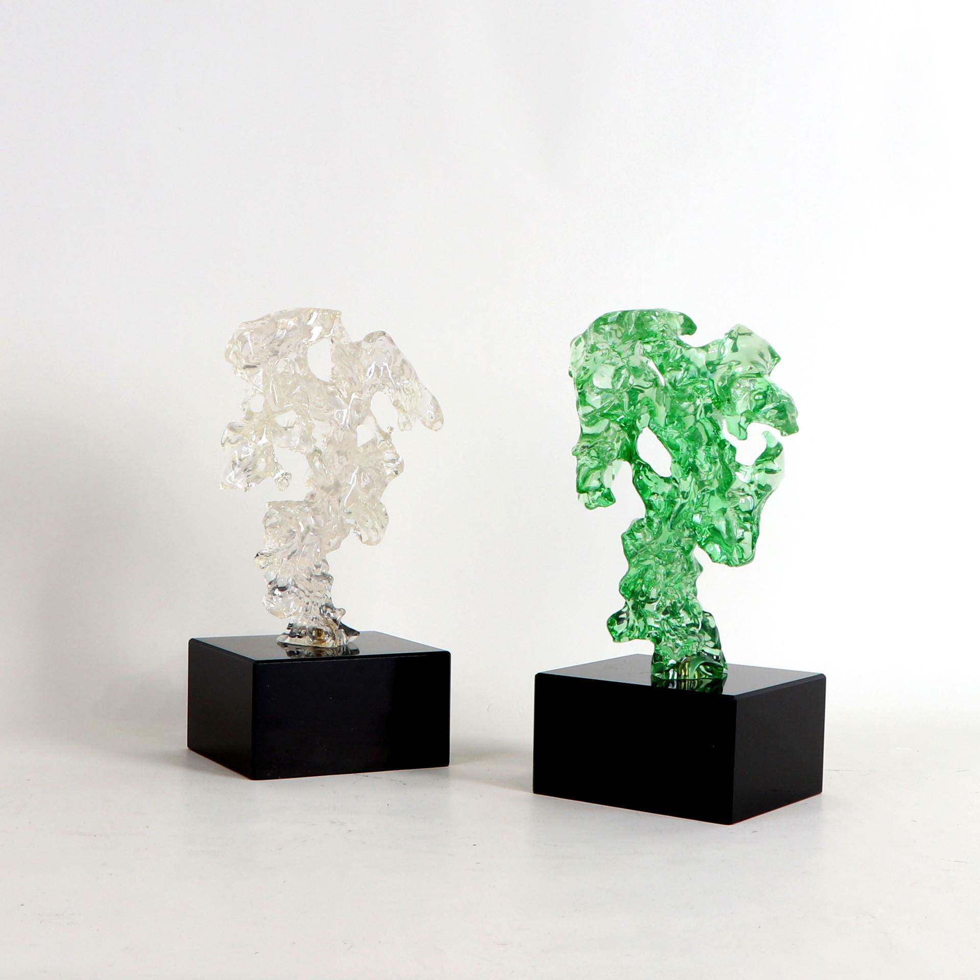 新中式绿色透明太湖石摆件展厅售楼处客厅隔断书房书柜软装饰品