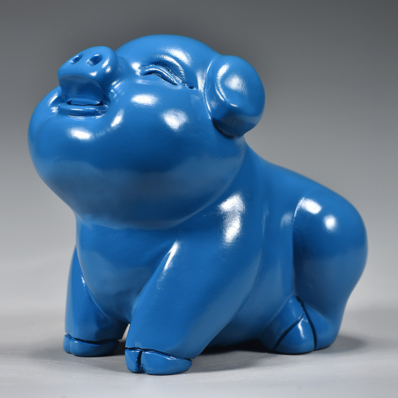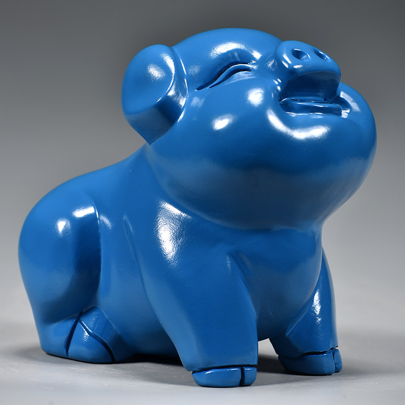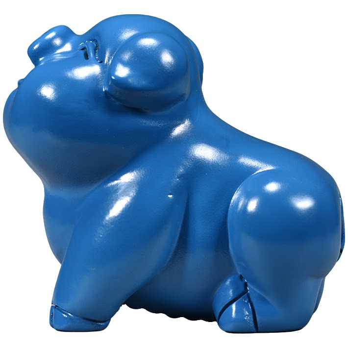 蓝色木雕狗摆件十二生肖狗实木家居客厅电视柜办公装饰红木工艺品