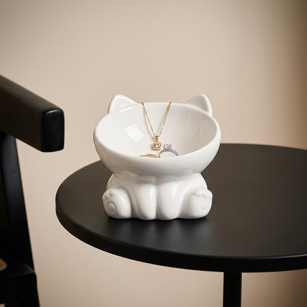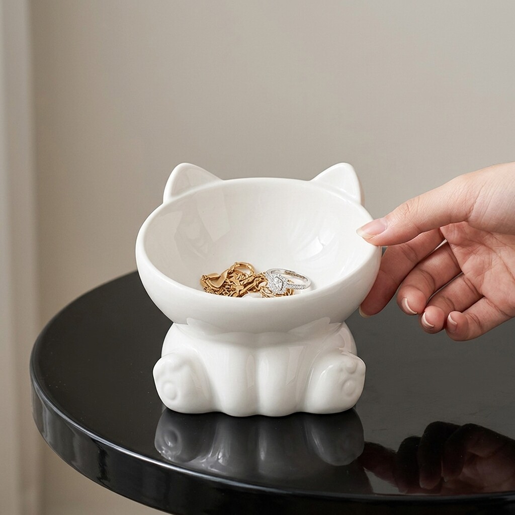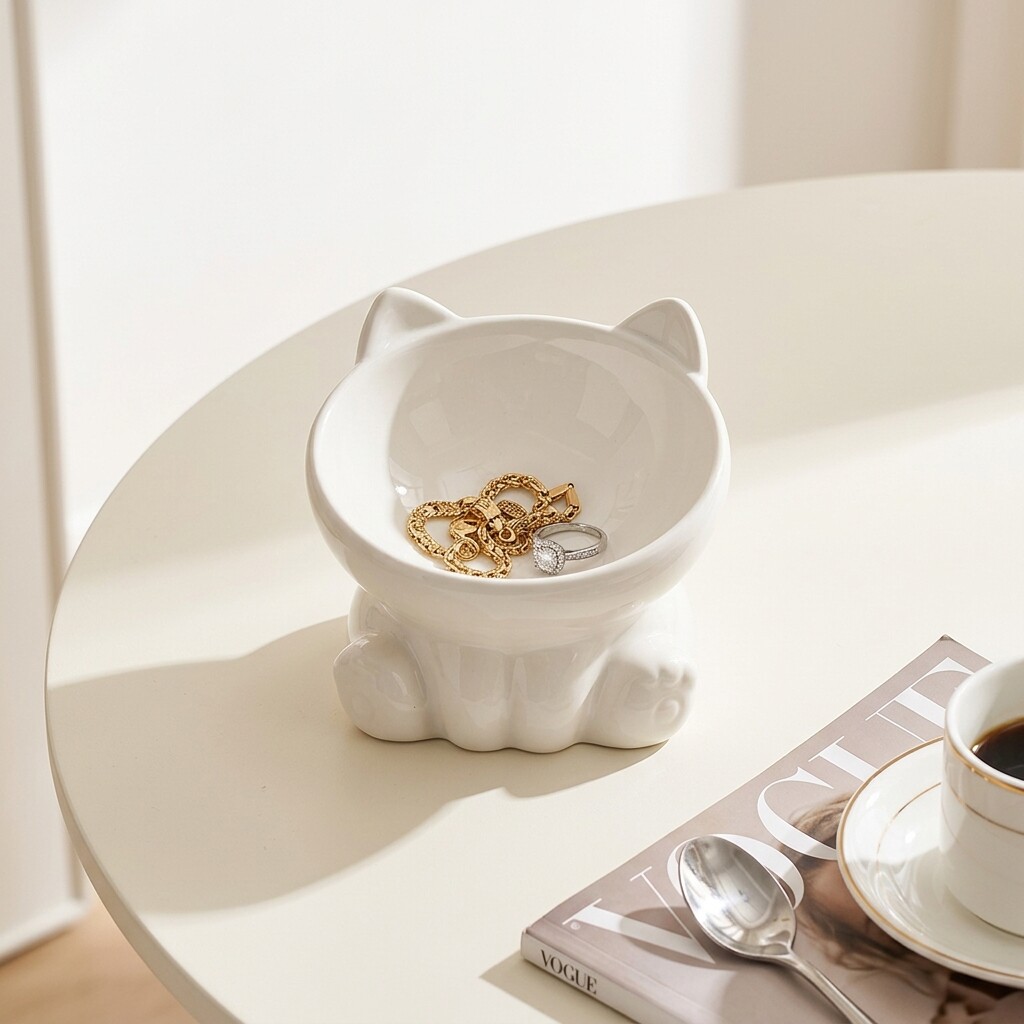可爱猫咪造型陶瓷收纳碗白色宠物饰品摆放碗家居装饰摆件