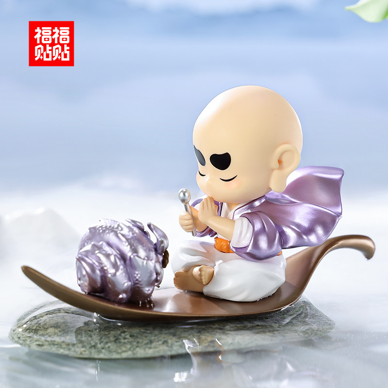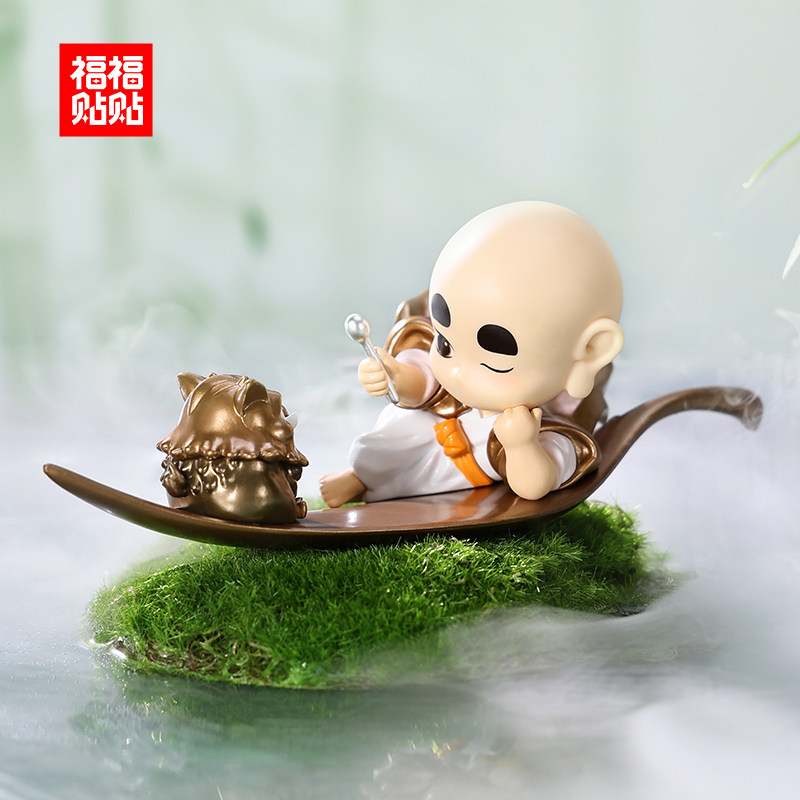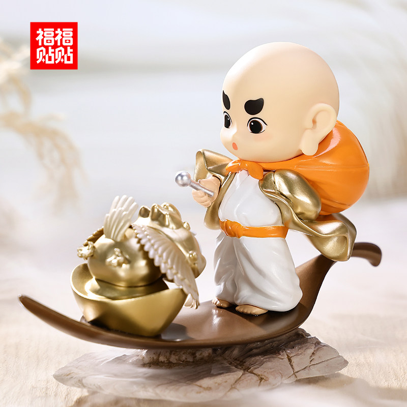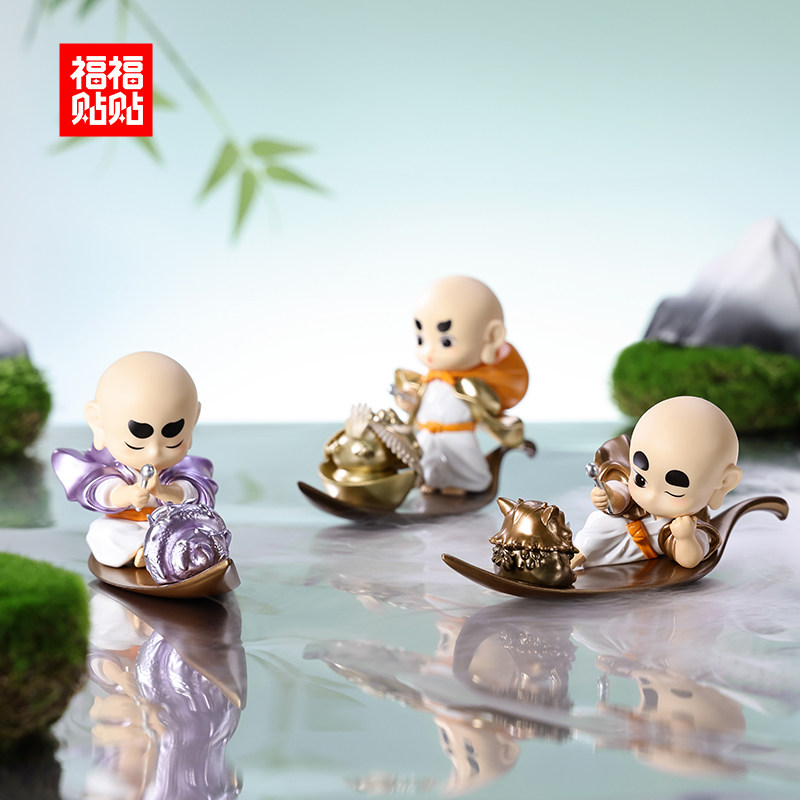 福福贴贴 阿福小和尚手办礼品治愈系盲盒新品办公室可爱汽车摆件