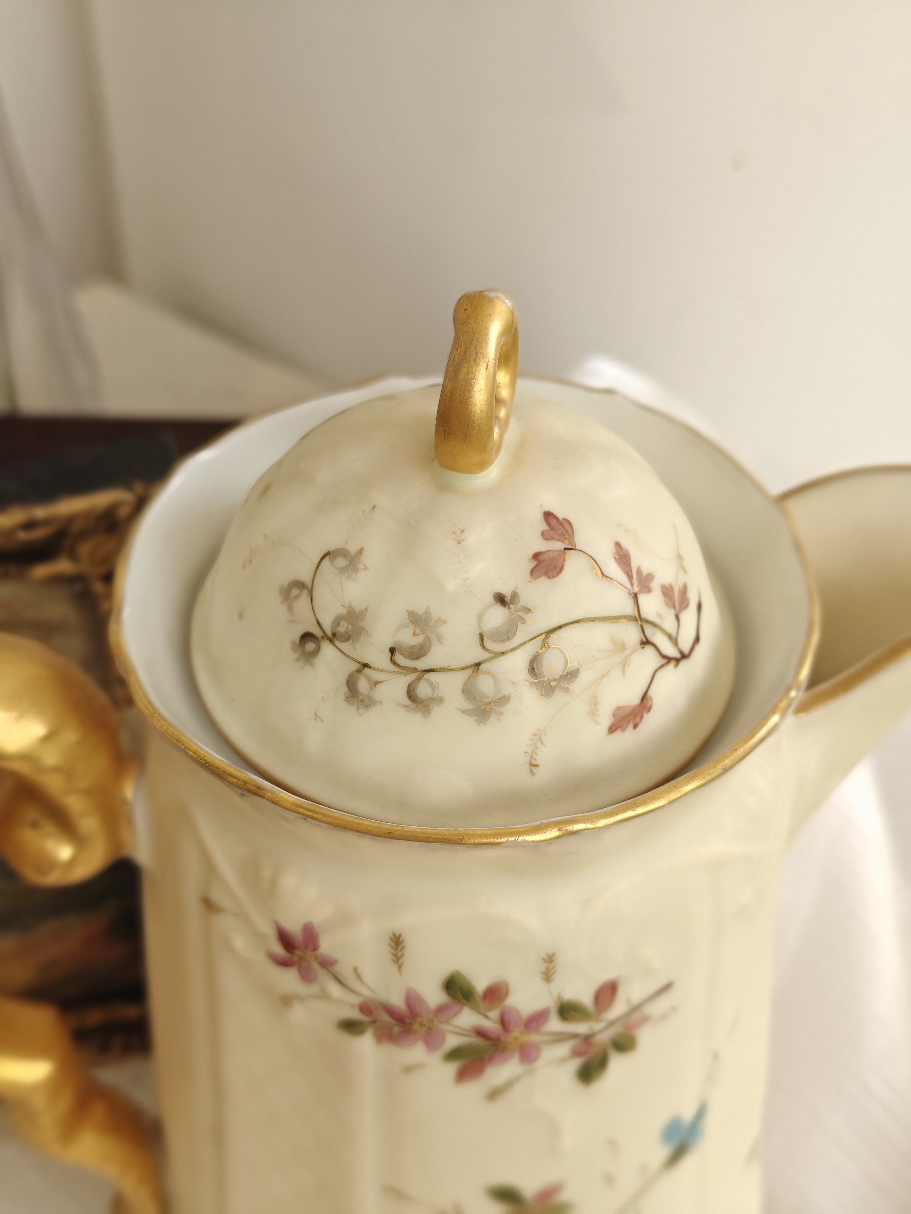 奥地利牙色手绘鎏金大号茶壶咖啡壶