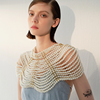 苏心新款女士珍珠百搭镂空上衣重工欧美风珍珠吊穗波浪披肩配饰女